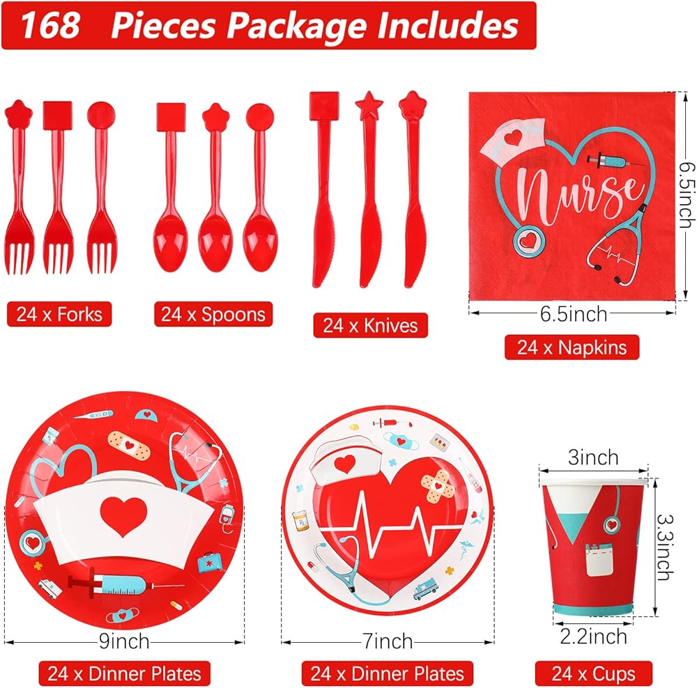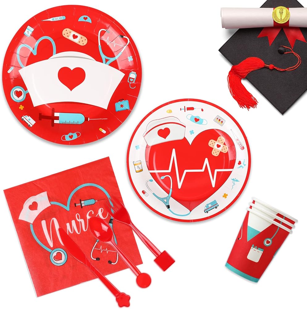 ديكورات مثالية لحفلات الممرضات: مجموعة أدوات مائدة حفلات الممرضات مناسبة لتزيين تخرج الممرضات، وتخرج الممرضات، وتزيين الحفلات، وحفلات تخرج الممرضات، والحفلات التي تحمل طابع الممرضات المسجلات؛ قضاء وقت سعيد مع شركائك المقربين من عائلتك، يتيح لك الحصول على ذكريات تخرج لا تنسى