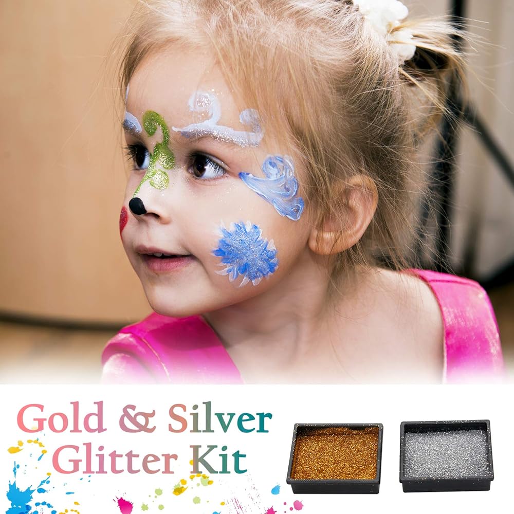 • مجموعة قيمة وهدايا. 20 لونًا قابلاً للغسل + بريق ذهبي وفضي + 30 استنسل + 3 فرش جميعها في عبوة واحدة رائعة. تشمل 20 لونًا: أبيض، أسود، أزرق، أخضر، وردي، أرجواني، أصفر، أحمر، وردي، رمادي، إلخ. وأكثر من ذلك.