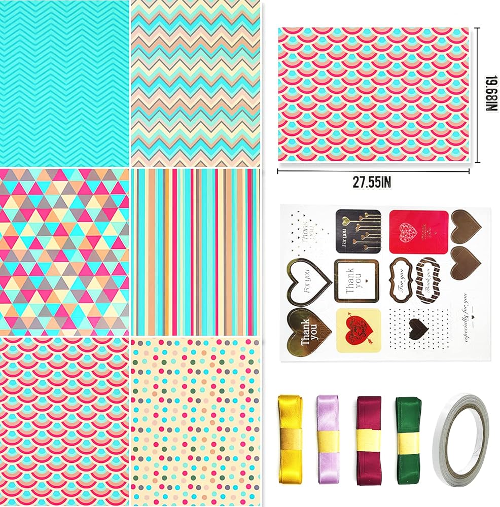 6 عبوات من التصميمات المختلفة تصنع ورق تغليف هدايا لأعياد الميلاد والعطلات والكريسماس وحفلات الزفاف وعيد الأم وحفلات استقبال الطفل والمزيد من أغلفة الهدايا