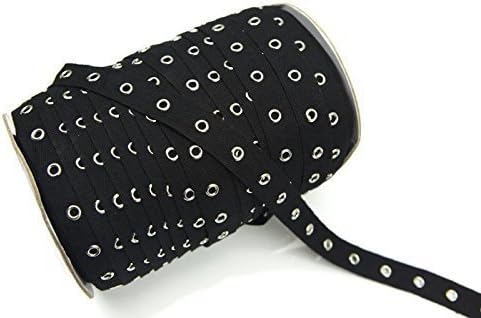 يمكنك صنعه بنفسك - 1 ياردة من الشريط الأسود مع فتحات من النيكل وشريط قطني مضلع بطول 3 ياردة باللون الأسود 1/8 انش للربط. طول مثالي للاستخدام كخط رقبة للقميص.