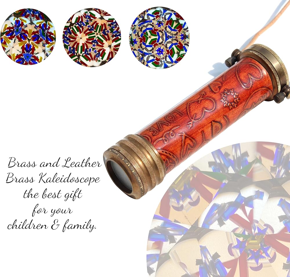 Unique leather carving on kaleidoscope with beautiful engraved imprint. Perfect to reflect your emotions towards to loved one. Gift for him, her, boyfriend, girlfriend or anyone.