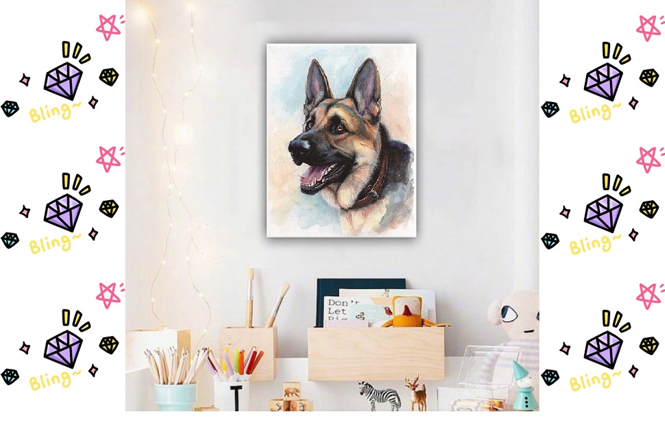 SUNKOO DIY الماس اللوحة الكلب الحفر الكامل الطلاء الراعي الألماني مع الماس الكلب التطريز مجموعات الفنون لديكور الحائط، 12 × 16 بوصة