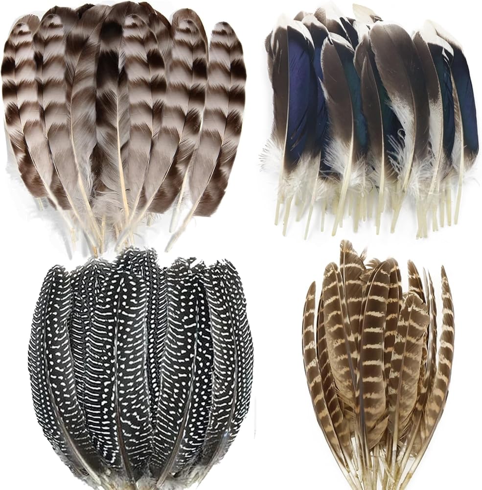 40 قطعة من ريش الديك الرومي الطبيعي، ريش الدراج المرقط، 4 أنماط من الريش للحرف اليدوية، قبعة DIY، ترتيبات الزهور، كرنفال الهالوين، ديكورات الحفلات