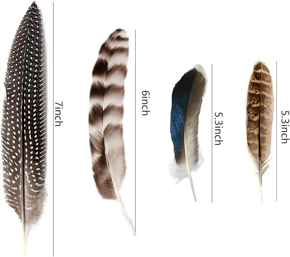 تشمل العبوة: سوف تحصل على 40 ريشًا حرفيًا متنوعًا، مع ما مجموعه أربعة أنواع مختلفة من الريش المزخرف، بما في ذلك 10 قطع من ريش أجنحة الطيور الغينية، و10 قطع من ريش الدجاج المقصب، و10 قطع من ريش البط، و10 قطع من ريش الديك الرومي الطبيعي.