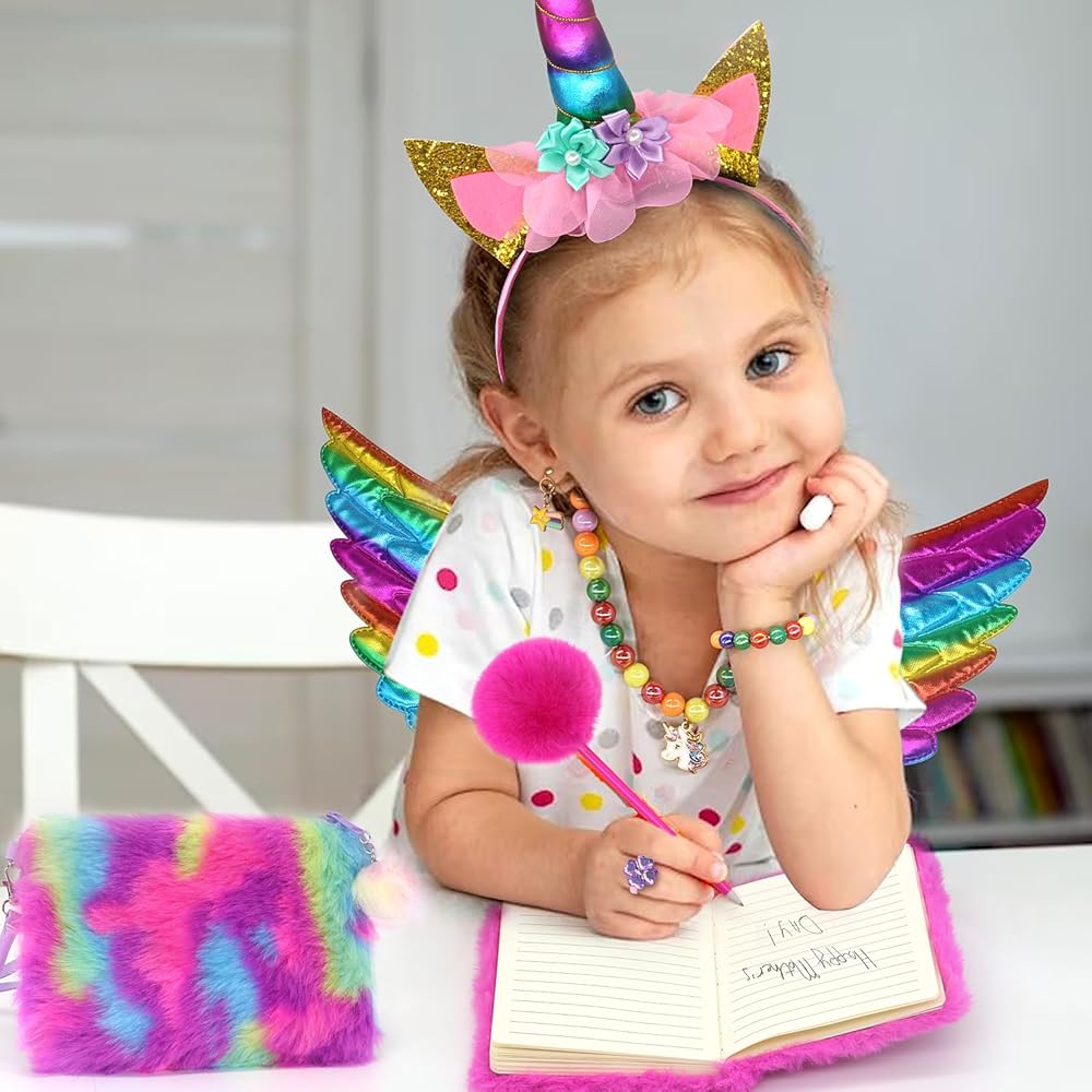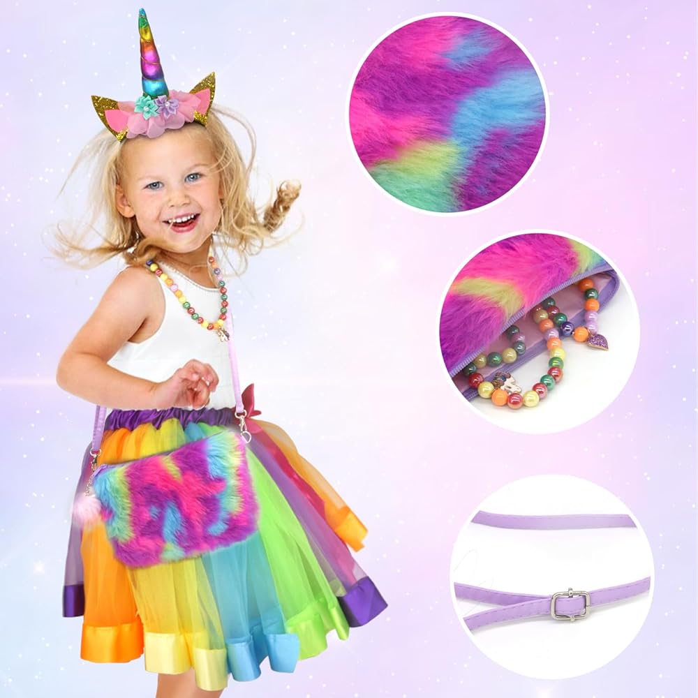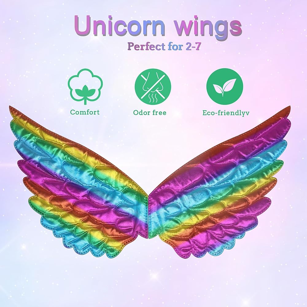 🦄 فستان يونيكورن للعب - مجموعة ملابس يونيكورن تتضمن تنورة توتو، جناح الجنية، عصابة رأس أحادي القرن، قلادة، سوار. يتم اختيار كل عنصر بعناية ليكون لطيفًا وجذابًا. لا تحتاج إلى شراء ملحقات أخرى للملابس لتناسب ملابس اللعب الخاصة بنا للفتيات الصغيرات. ألعاب تلبيس وتظاهر للأطفال ذات قيمة فائقة للفتيات الصغيرات.