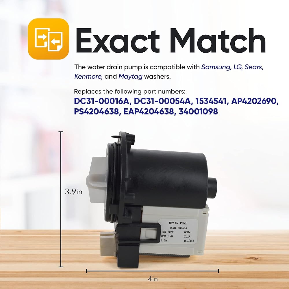 مطابقة تامة: مضخة تصريف الغسالة متوافقة مع Samsung وKenmore وLG