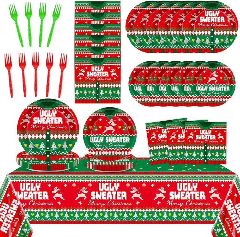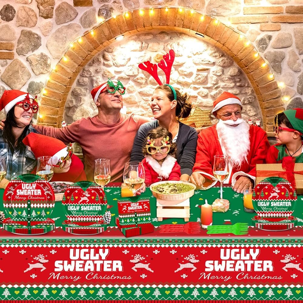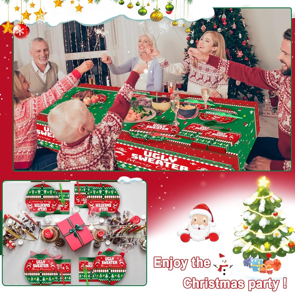 【تستخدم على نطاق واسع】مجموعة مفارش المائدة وأدوات المائدة المصنوعة من زهرة البونسيتة لعيد الميلاد مناسبة لتزيين حفلات عيد الميلاد أو النزهات أو المدرسة أو الهواء الطلق أو المكتب أو في المنزل. مجموعة لوازم زهرة البونسيتة لعيد الميلاد ستصنع ذكريات مثيرة لحفلاتهم.