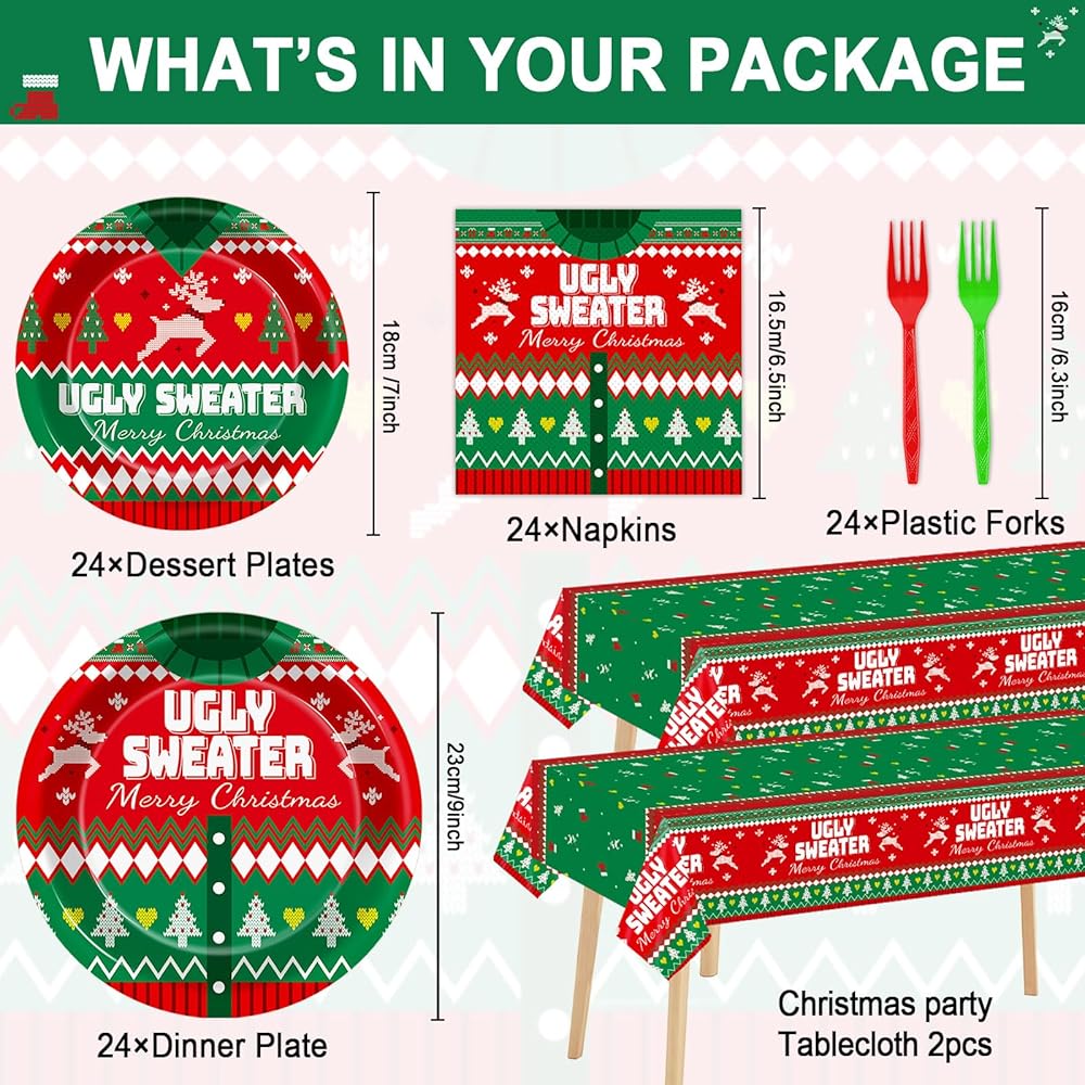 تتضمن العبوة: سوف تحصل على قطعتين من مفارش المائدة على شكل زهرة البونسيتة لعيد الميلاد مقاس 137 سم × 108 سم، 24 قطعة من أطباق العشاء الورقية على شكل زهرة البونسيتة للكريسماس مقاس 22.86 سم، 24 قطعة من أطباق الحلوى مقاس 17.78 سم، 24 قطعة من مناديل حفلات عيد الميلاد 6.5 بوصة و24 شوكة بلاستيكية لكل مجموعة تكفي لخدمة 24 ضيفًا.