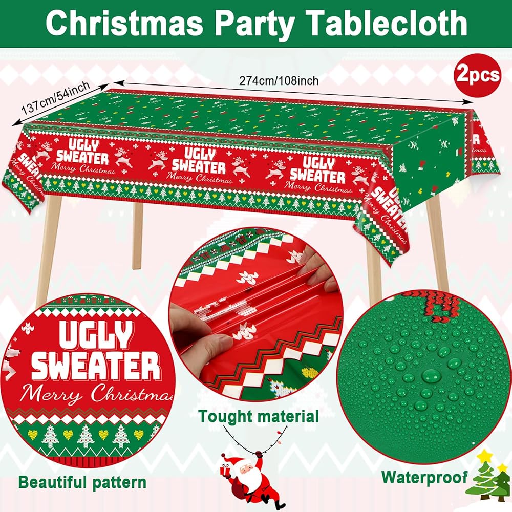 【مفارش طاولة مقاومة للماء لحفلات عيد الميلاد】أغطية طاولات زهرة البونسيتة لعيد الميلاد هذه مصنوعة من البلاستيك المقاوم للماء، مما يحافظ على طاولتك من البقع التي يسببها الطعام والشراب وأكثر من ذلك. فهي غير سامة، ولا رائحة لها، ومقاومة للحرارة ومتينة. - مقاوم يجعل سطحه أملسًا وسهل التنظيف، مما يخلق انطباعًا رائعًا لحدث الرمي الخاص بك.