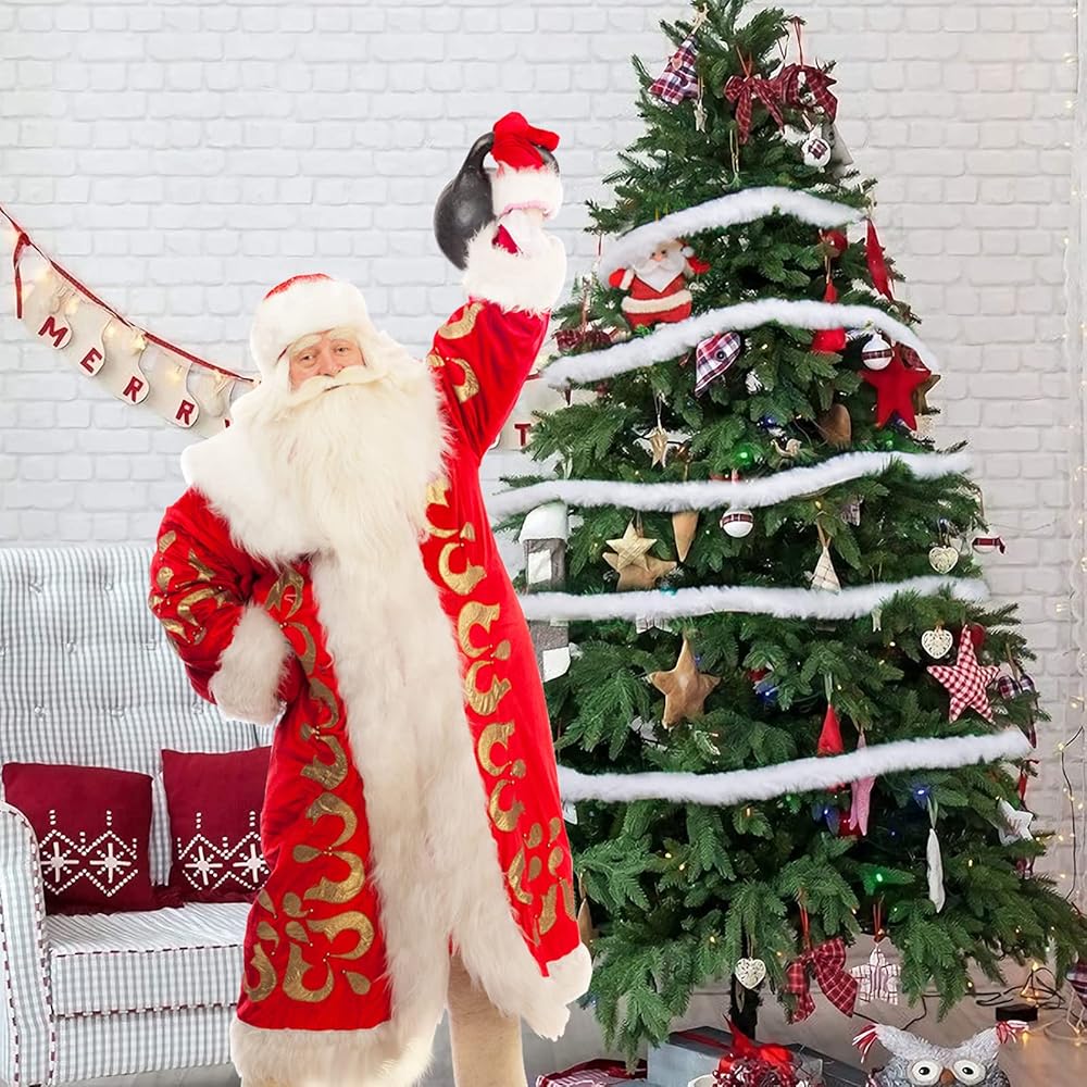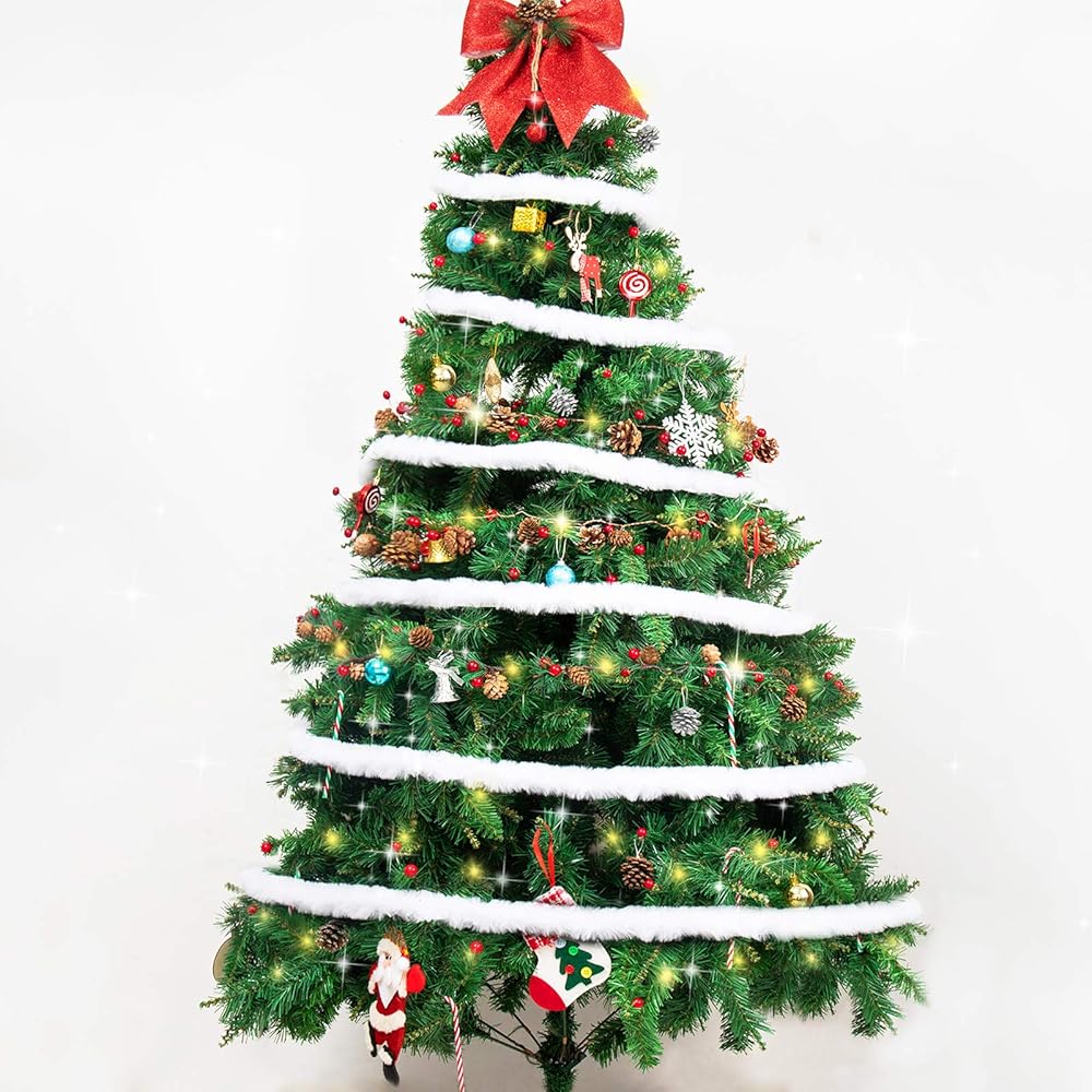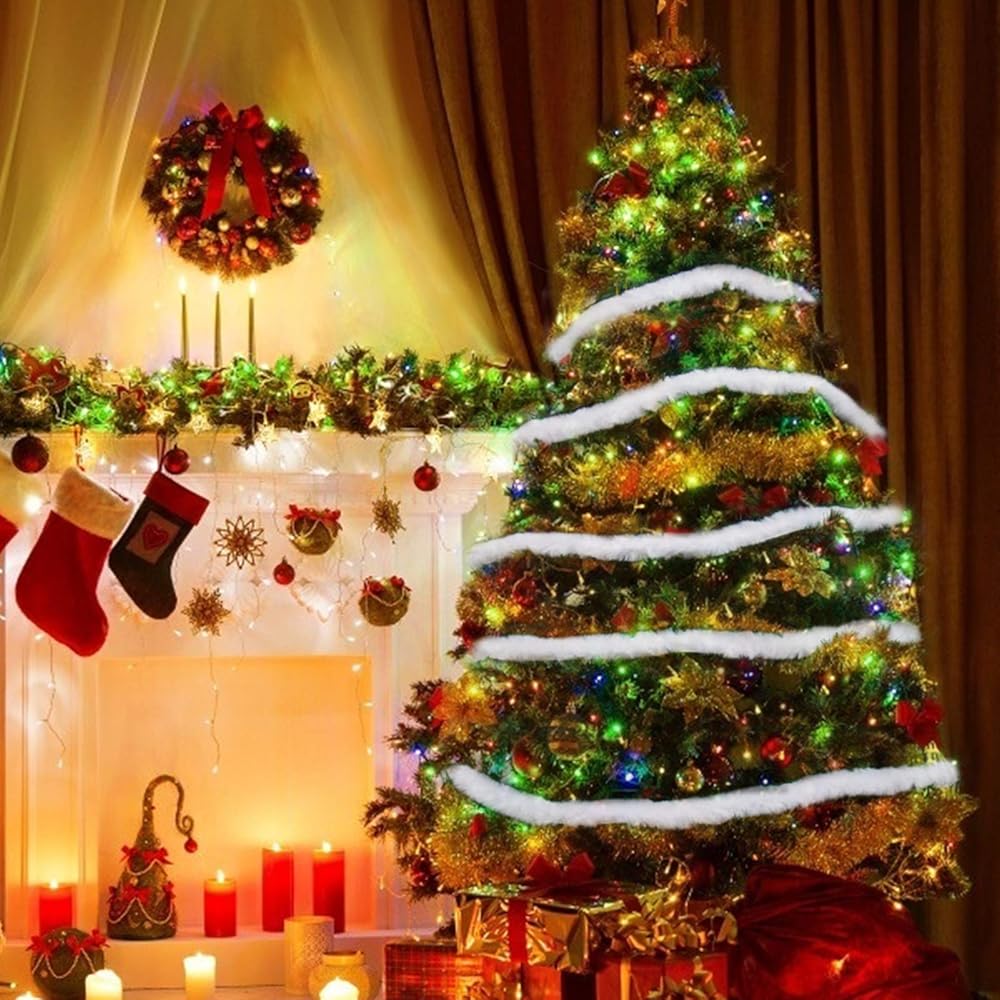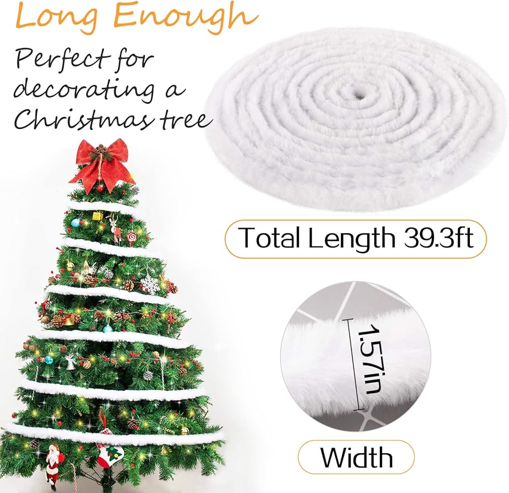 استخدام واسع: بصرف النظر عن كونه إكليل ملفوف لشجرة الكريسماس، يمكن استخدام شريط الفرو الصناعي الأبيض للكريسماس بطول 46.6 قدم للحواف الزخرفية لقبعات الكريسماس وجوارب الكريسماس وغيرها من إكسسوارات الكريسماس، ويمكنك أيضًا صنع العديد من الحرف اليدوية كما تريد.