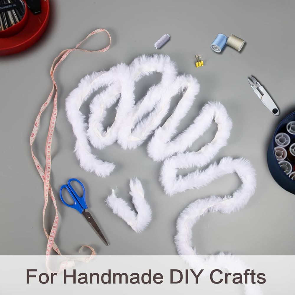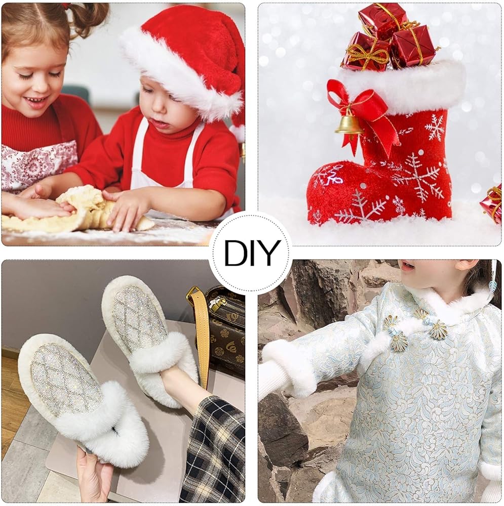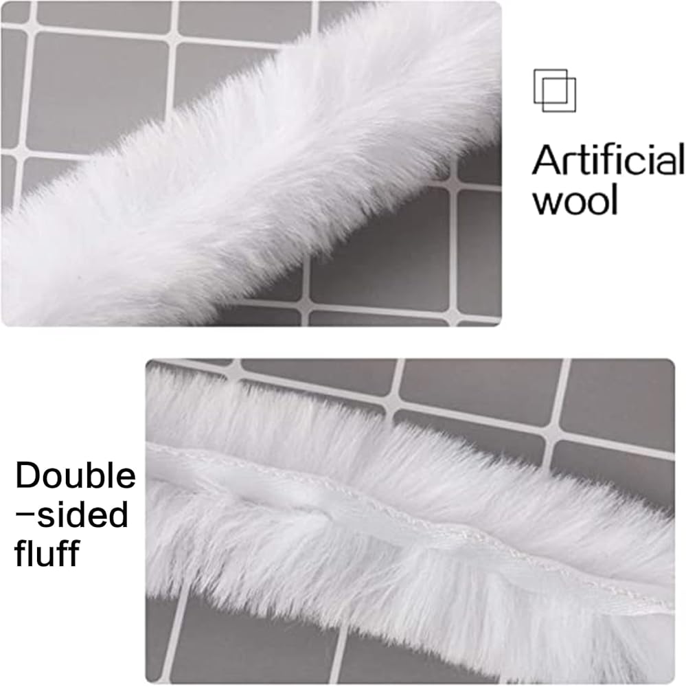 خامة فاخرة: مصنوع من صوف صناعي عالي الجودة، شريط الفرو الأبيض نقي اللون وكثيف من الفرو، مما يوفر لك شعورًا بالنعومة والراحة للغاية. بالإضافة إلى ذلك، فهي آمنة وليس لها رائحة غريبة، يمكنك استخدامها دون أي قلق.