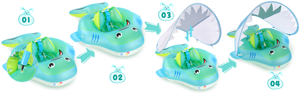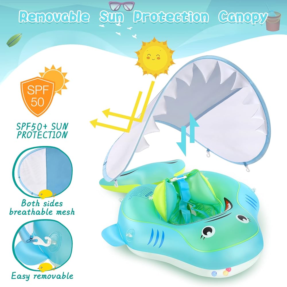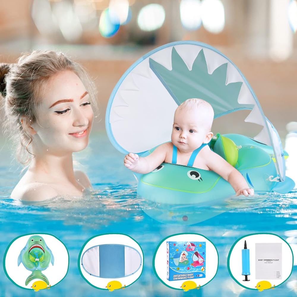 عوامة حمام السباحة للأطفال، عوامة سباحة للأطفال مع مظلة، عوامات سباحة للأطفال قابلة للنفخ مع دعم آمن، عوامة حمام سباحة للأطفال من عمر 12 إلى 18 شهرًا، مدرب سباحة للأطفال من سن 3 إلى 36 شهرًا