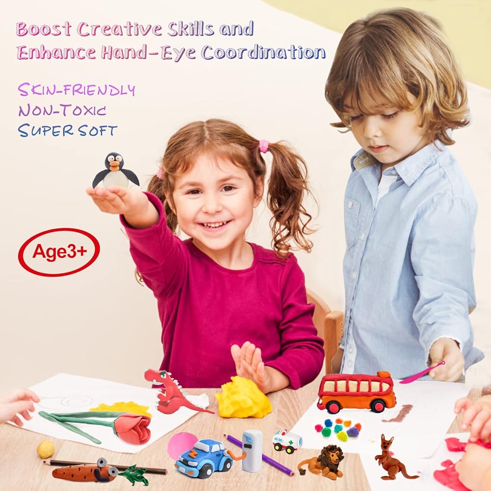 [مجموعة الطين النمذجة الفائقة] مجموعة الطين الجاف بالهواء 24 لونًا مختلفًا مع 3 أدوات نحت، يمكنك مزج مجموعة متنوعة من الطين الملون إذا كنت تريد المزيد من أنواع الألوان