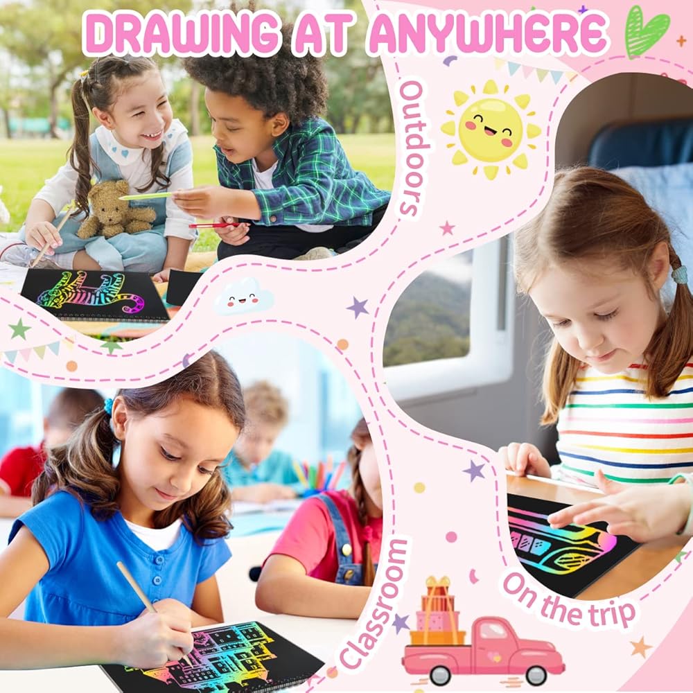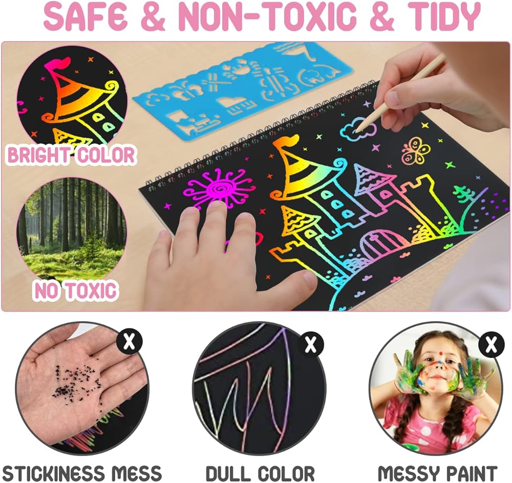 هدية مثالية - كتاب الفن الخدش مع عبوة رائعة وهو هدية رائعة للفتيات والأولاد في سن 3 4 5 6 7 8 9 سنوات. توفر المزيد من خيارات الهدايا لأعياد ميلاد الأطفال وعيد الفصح وعيد الشكر وعطلات عيد الميلاد والاحتفالات، مثالية لألعاب الأطفال والحفلات المدرسية والأنشطة المدرسية أو أي مناسبات خاصة للأطفال والمراهقين والأطفال والعائلة.