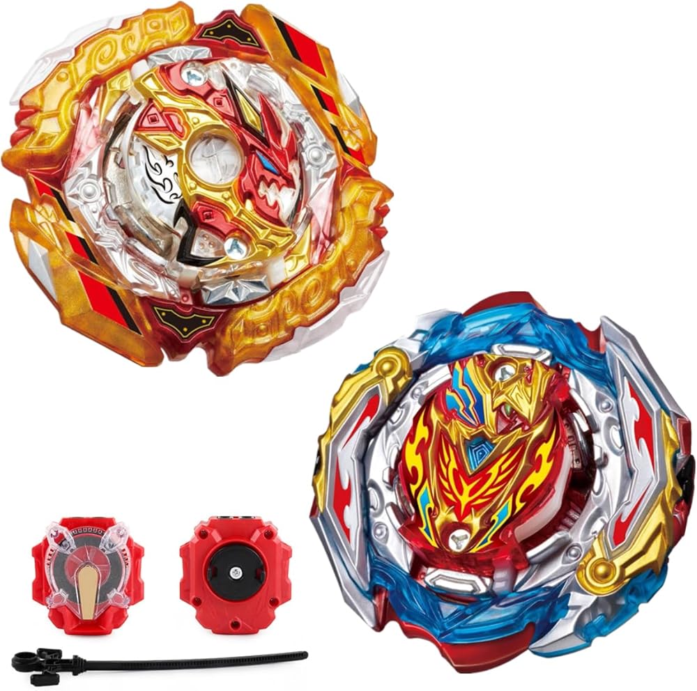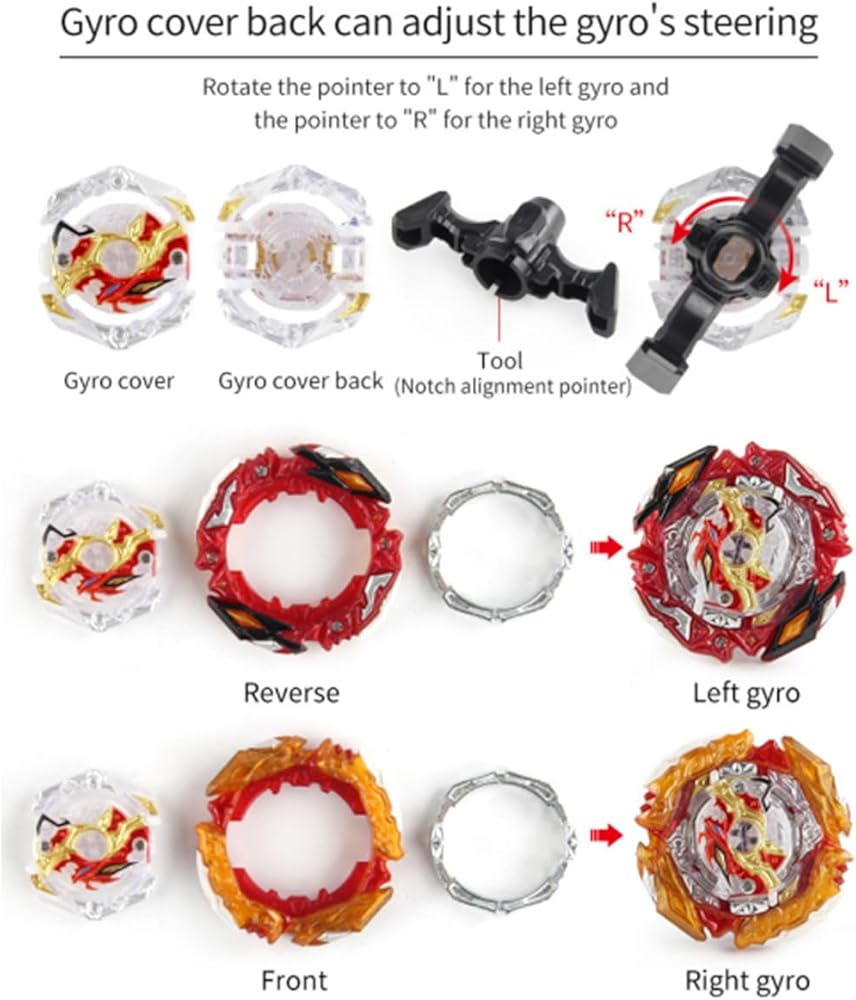 تتضمن العبوة: 2 × قطع علوية دوارة (B-201 Zest Achilles B-205 Burst Spriggan). قاذفة ثنائية الاتجاه (يسار ويمين) × 1، ملصقات × 2. مجموعة كما تظهر في الصورة.