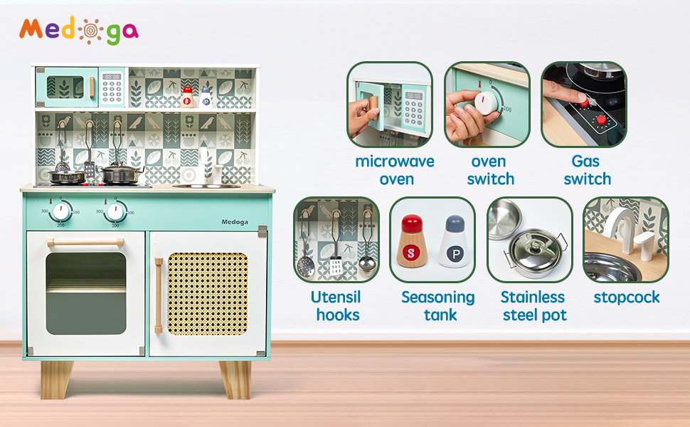 🎂【نحن نركز على الجودة】مطبخ اللعبة مصنوع من الخشب الطبيعي، قوي ومتين، والسطح أملس وخالي من الاختباء، مما يضمن سلامة الأطفال عند لعب لعبة المطبخ! إنها تتجاوز اختبارات السلامة الفيزيائية والكيميائية المطلوبة من قبل معايير ASTMF-963 الأمريكية والاتحاد الأوروبي EN-71.
