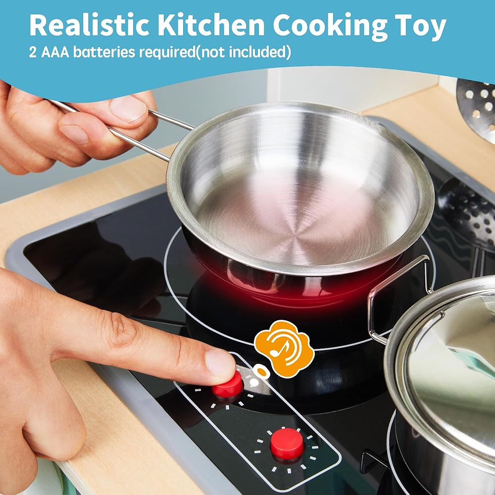 🎁【 هدية مثالية للعطلات】مجموعة لعب المطبخ الخشبية يمكن أن ترضي فضول طفلك حول المطبخ وتحفز خياله، هدية عيد ميلاد مثالية للفتيات والأولاد، هدية عيد الميلاد، هدية الهالوين!