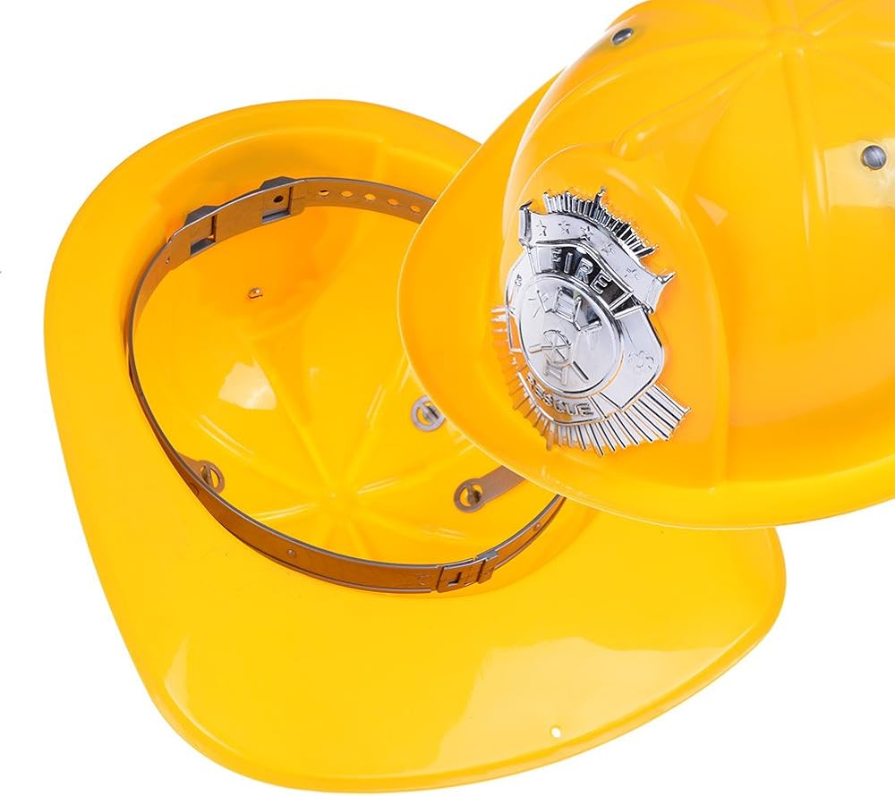 يمكنك اختيار اللون الأصفر أو الأحمر، كل منها مزود بشارة بلاستيكية فضية للإنقاذ من الحرائق وعلى القمة الخلفية. مريح مع عصابة رأس بمقاس شبابي قابلة للتعديل بالكامل.