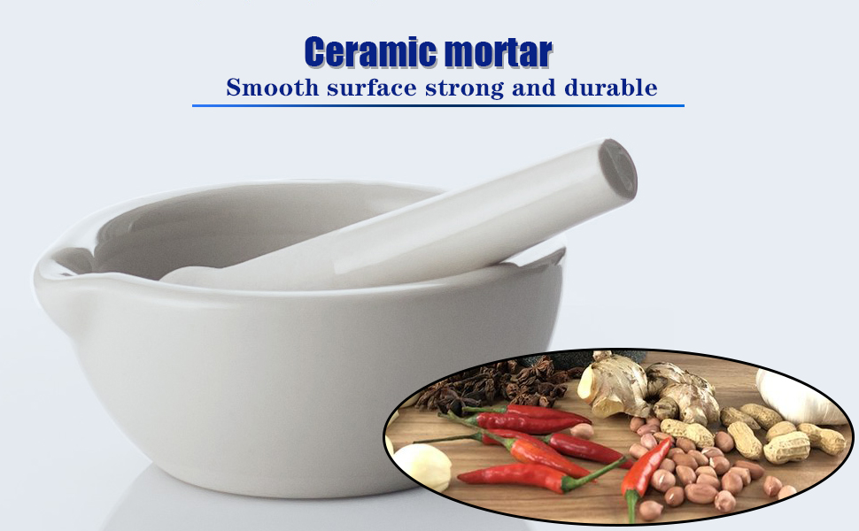 Practicability:Easily picked up with one hand, The porcelain mortar interior is unpolished and rough for better grinding. Also the ceramic mortar absorbs no flavor,can stick stuff you crush, easily to take out all you crush.You can also easily take out all you crush. Combine the small gaps on the porcelain to pour out easily.