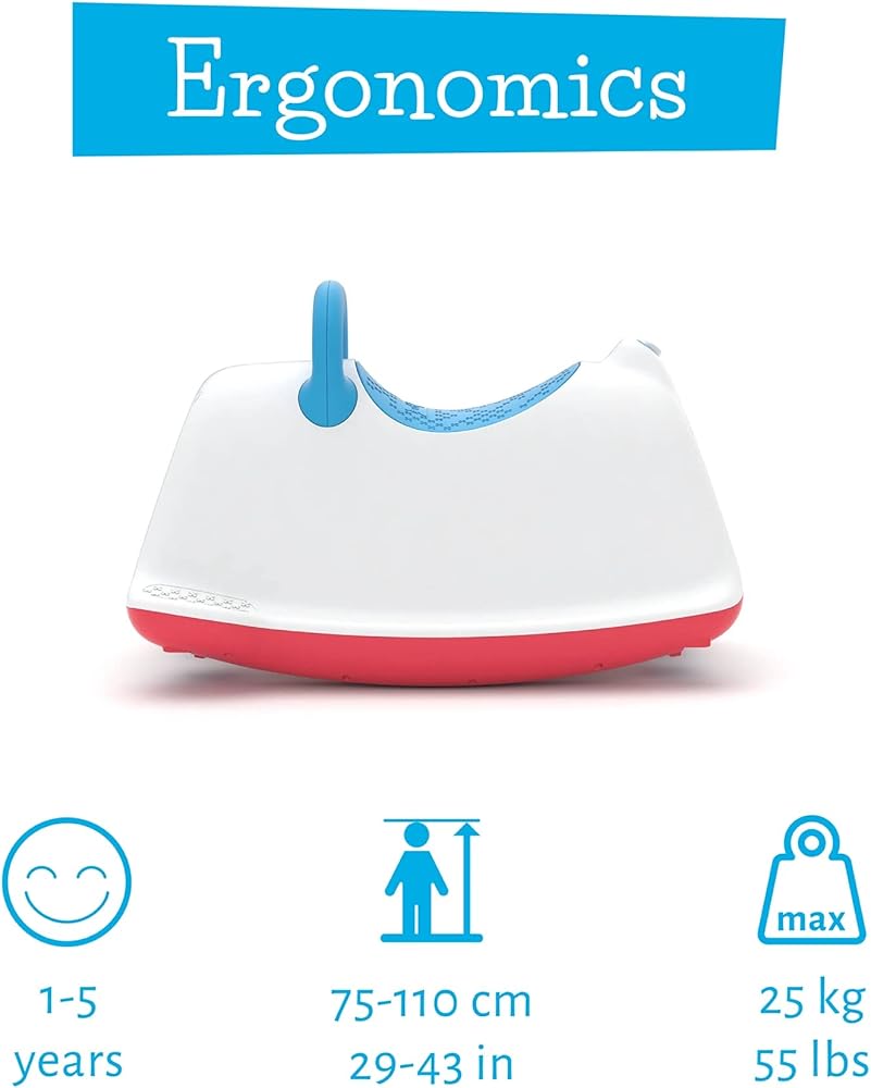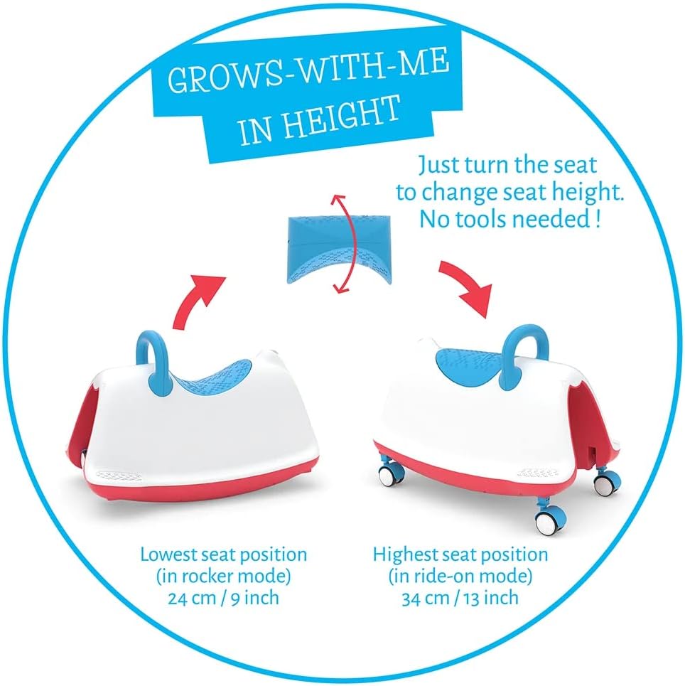 • ينمو معي في ارتفاع المقعد: فقط ادفع المقعد من الأسفل، واقلبه لتحصل على مقعد أعلى قليلاً. أدنى موضع للمقعد (إلى مسار القدم، في الوضع المتأرجح): 7.8 بوصة / 20 سم وأعلى موضع للمقعد (إلى الأرض، في وضع الركوب): 13 بوصة / 34 سم