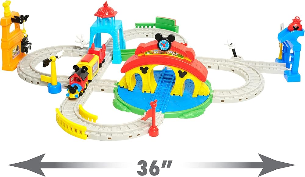 3 تصميمات للمسارات: يمكن للأطفال في مرحلة ما قبل المدرسة أن يبدعوا مع 22 قطعة مسار سهلة التوصيل، وبناء المسار بثلاث طرق مختلفة.. اللعب الخيالي: سيحب الأطفال التظاهر بإجراء توصيلات خاصة مع ميكي ماوس. تتضمن مجموعة القطار التي تحمل طابع ميكي ماوس نقاط توقف ودعائم ممتعة حتى يتمكن الأطفال من ابتكار مغامرات جديدة لساعات من اللعب. فكرة هدية للأطفال: لعبة ديزني هذه تمثل هدية رائعة للأطفال من سن 3 سنوات فما فوق. تتطلب 5 بطاريات ايه ايه ايه (متضمنة). يلزم تجميع البالغين.