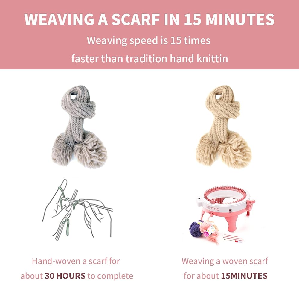 【Scope of application】knitting machines for adults can knit gloves, socks, scarves, dolls, bags, pumpkins, flowers, sweaters, sweaters, etc. You can weave the most fashionable products available, learn on the video network and you will become more skilled in operation.
