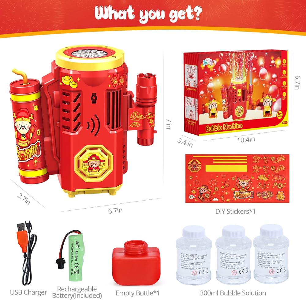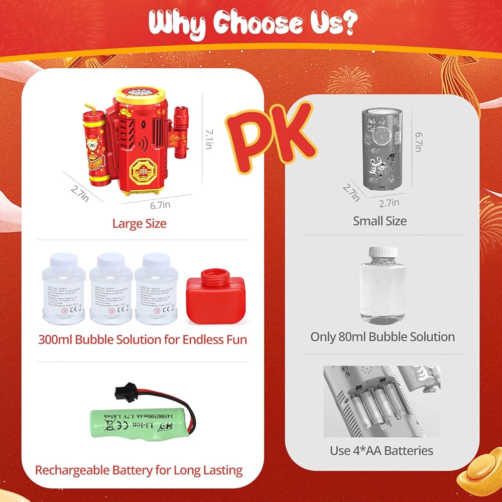 • ☀ العديد من الملحقات - إجمالي 4 زجاجات و30 قطعة من سائل الفقاعات ☀ يضمن حل الفقاعات الوفير المقدم استخدامًا طويل الأمد. يعد استبدال المحلول أمرًا سهلاً - ما عليك سوى صب الفقاعات المركزة في الزجاجة، ثم املأها بالماء، وستكون جاهزًا للانطلاق.