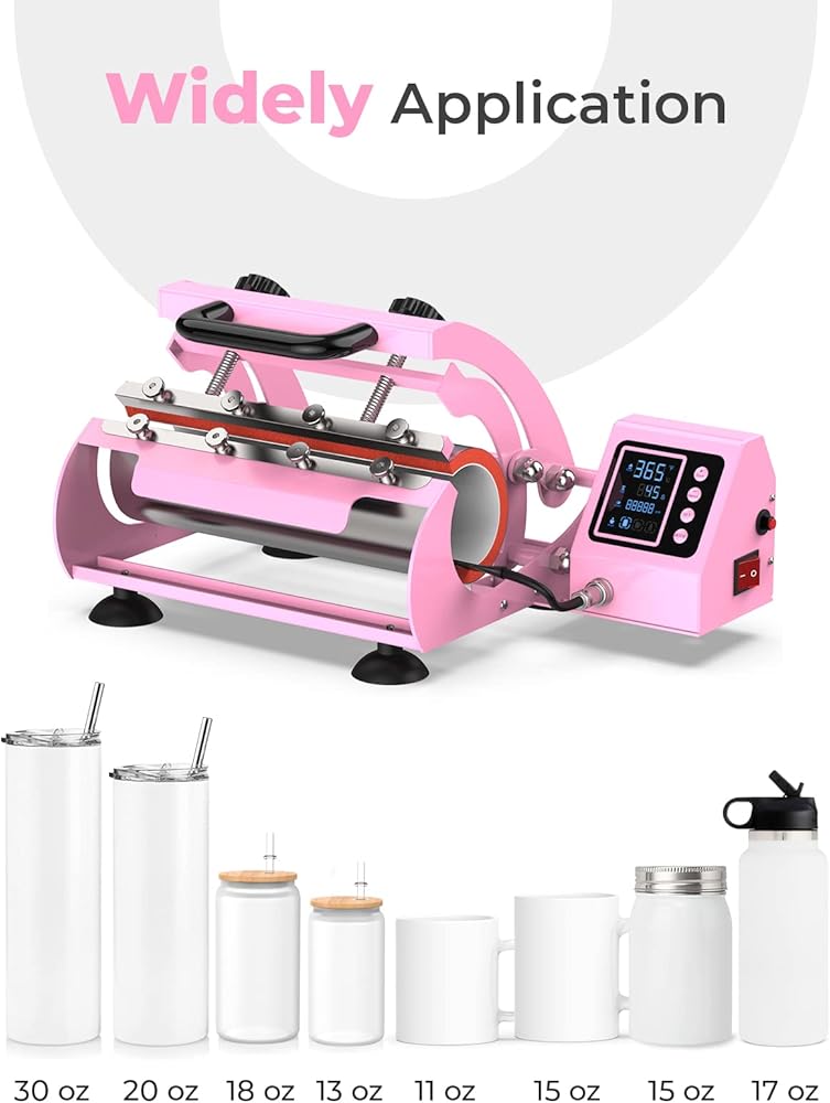 ♪ توافق عالمي: مع مكبس الأكواب القابل للتعديل هذا، يمكنك طباعة أكواب نحيفة مقاومة للصدأ سعة 16 أونصة و20 أونصة و30 أونصة، وعلب زجاجية سعة 13 أونصة و18 أونصة، وعلب زجاجية سعة 13 أونصة و18 أونصة، كما يمكنك طباعة قطعتين من أكواب السيراميك بوزن 11 أونصة أو 15 أونصة في وقت واحد (هذا الطراز ليس كذلك) مناسبة للأكواب التي يقل قطرها عن 2.6 بوصة)