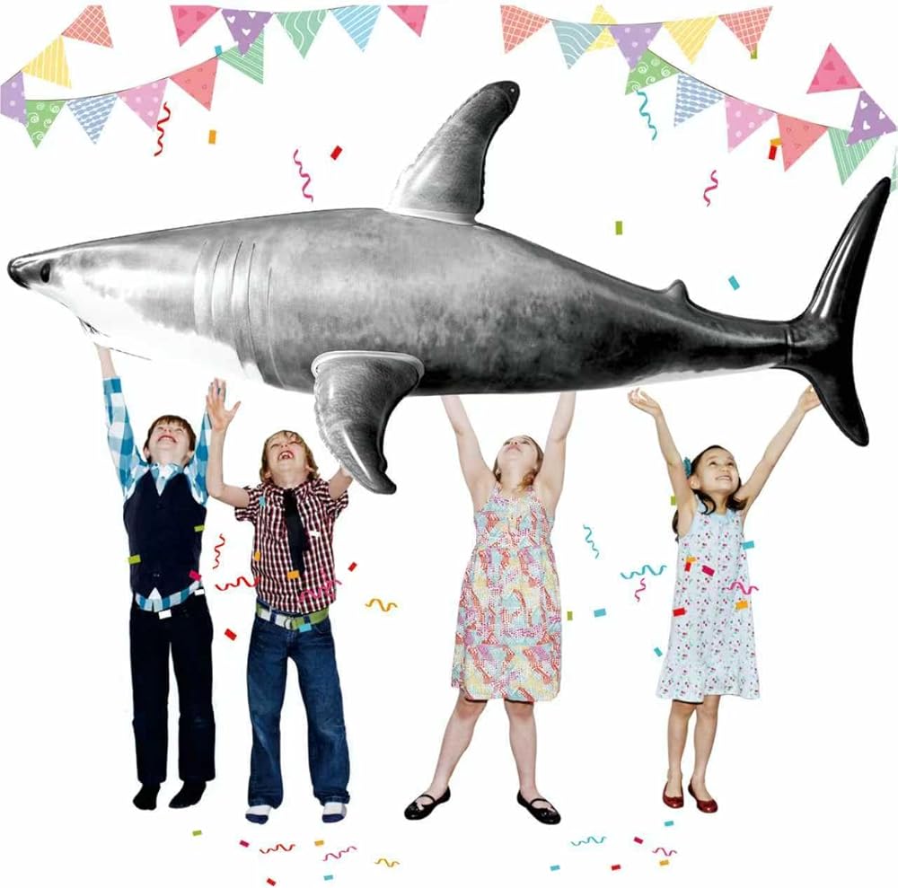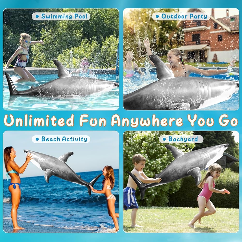 تصميم مرح وملون - سيحب الأطفال والكبار اللعب بلعبة القرش القابلة للنفخ هذه بمظهرها النابض بالحياة ولافت للنظر. سمكة قرش عملاقة، بطول 79 انش، يمكنها حمل ما يصل إلى 150 باوند، مناسبة للبالغين والأطفال