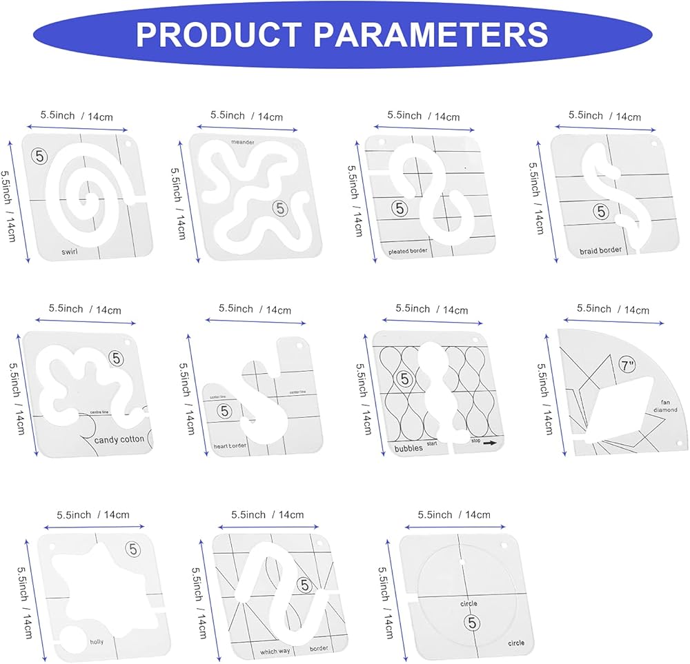 • تشمل العبوة: تتضمن مجموعة المسطرة 11 نوعًا مختلفًا من قوالب اللحاف ذات الساق المنخفض Q5-01, Q5-02, Q5-03, Q5-04, Q5-05, Q5-06, Q5-07, Q5-08, Q5-09, Q5-10, Q5-11) الأشكال المختلفة يمكن أن تلبي الاحتياجات.