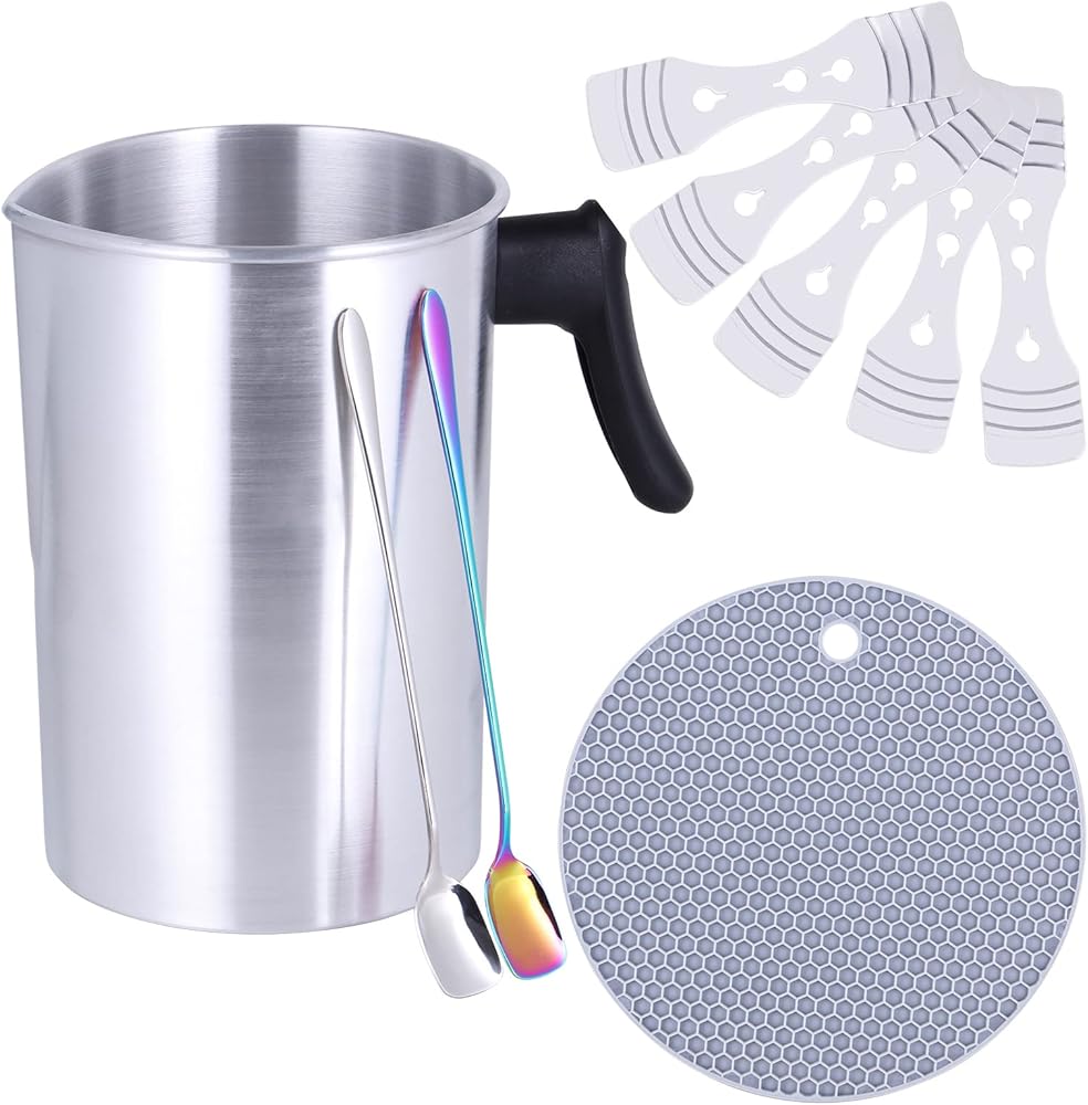 وعاء إذابة الشموع، مجموعة صنع الشموع من توكسيو، مجموعة صنع الشموع ذاتية الصنع، إبريق صب من الألومنيوم لصنع الشموع، وعاء إذابة الشمع مع مقبض مقاوم للحرارة وفوهة صب