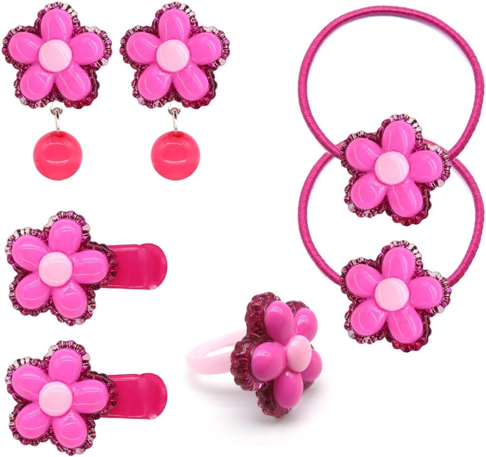 Package include 1 plush handbag, 1 necklace and matching bracelet, 1 pair clip on earrings, 1 pair hair clips, 1 pair hair ties and 1 rings