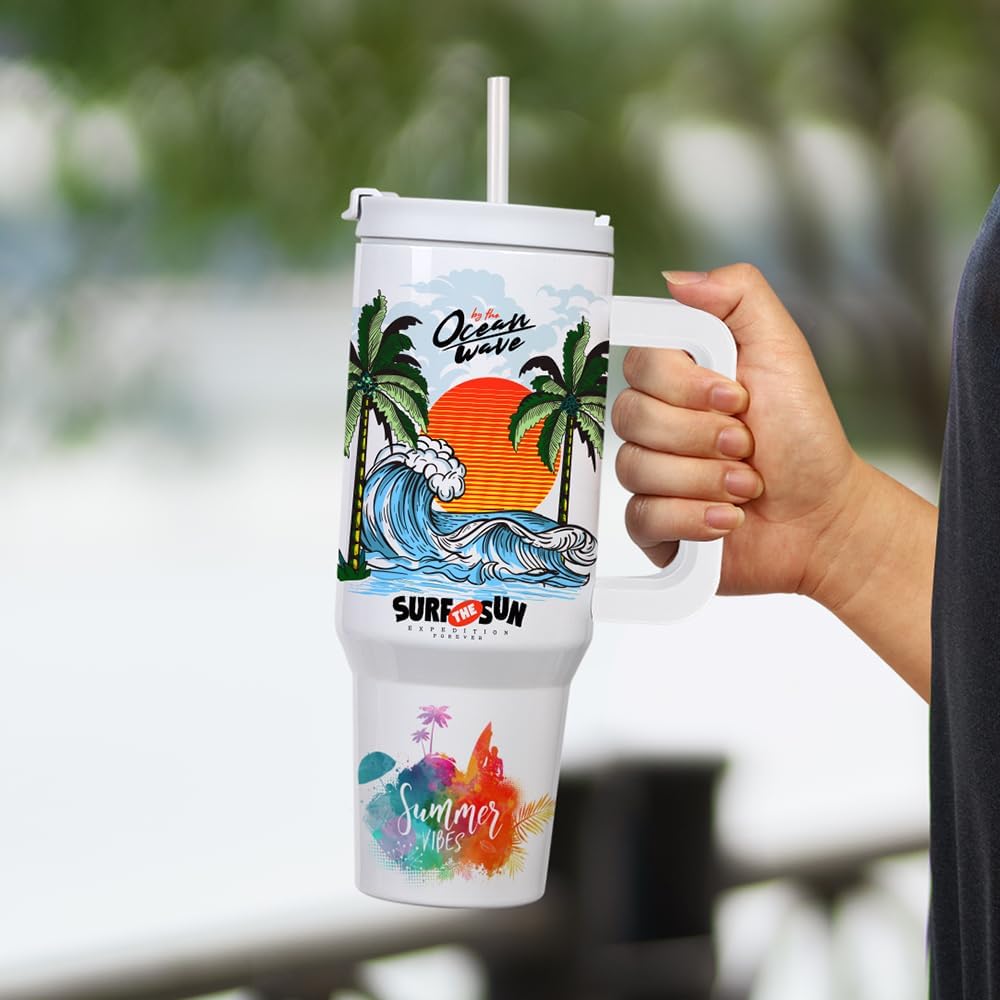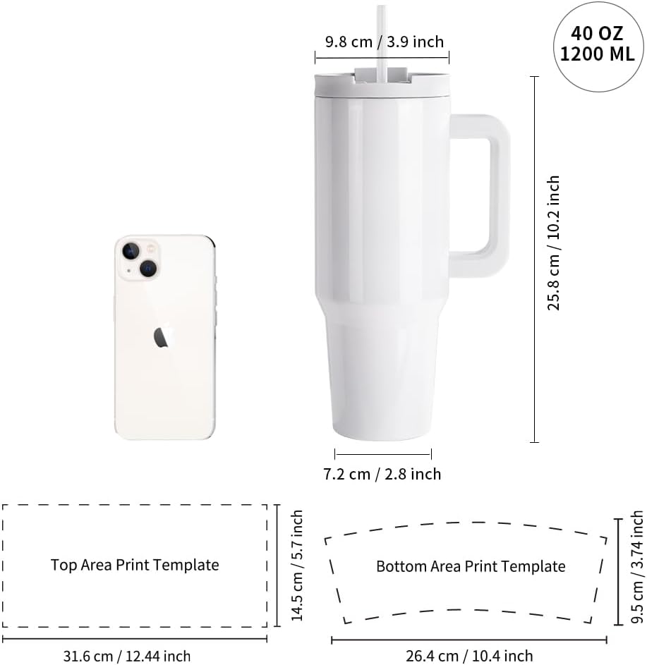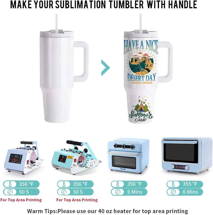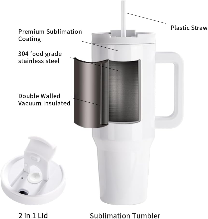 طلاء فاخر بالتسامي: أكواب السفر ذات المقبض بوزن 40 أونصة جاهزة للتسامي عن طريق الضغط الحراري على الإسفنج أو فرن التسامي، مع طلاء ممتاز، يخرج لون الطباعة ساطعًا وليس ضبابيًا.