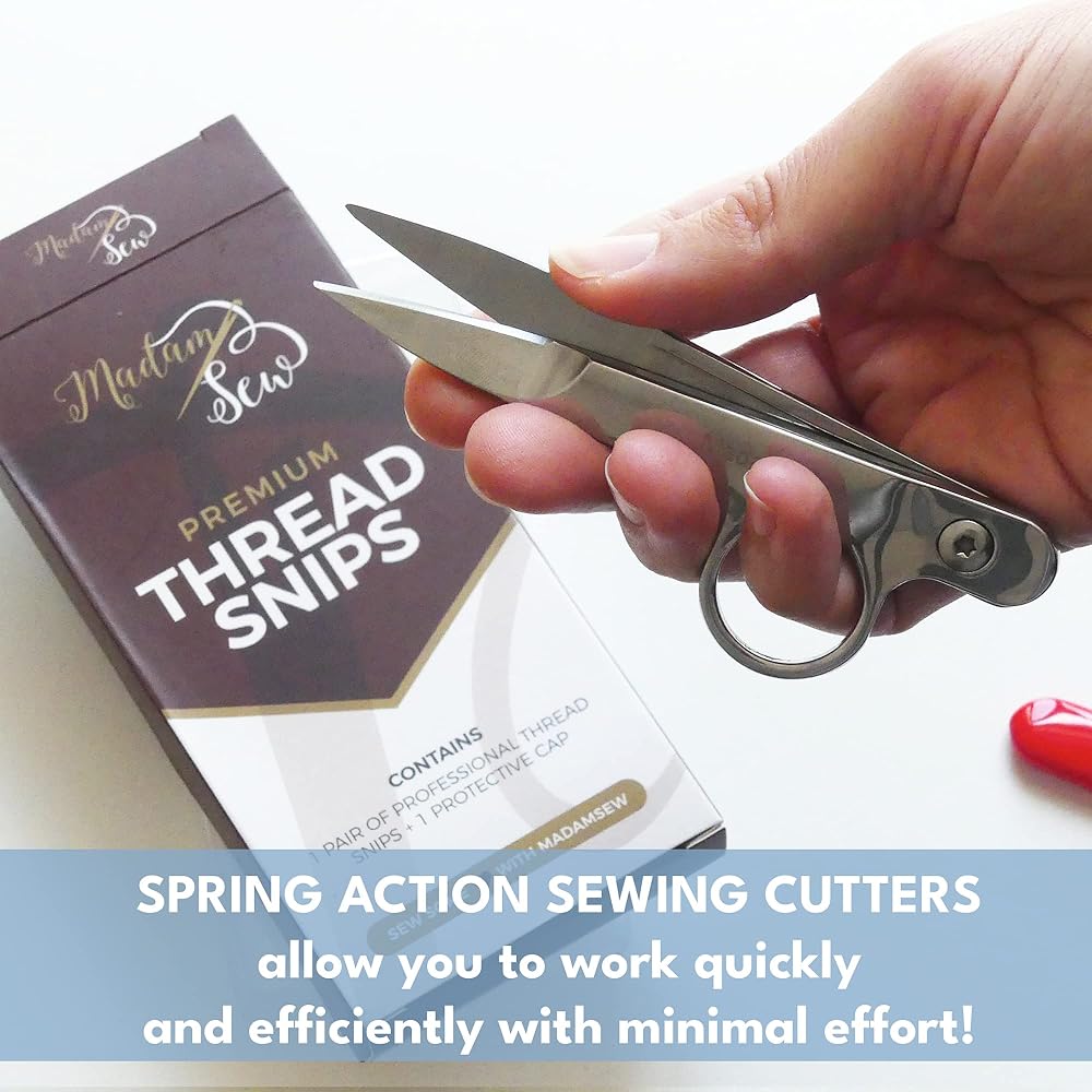 مدام سو مقص خيوط للخياطة - اداة تقطيع الخيوط الزنبركية مع شفرات حادة من الستانلس ستيل للخياطة والتطريز وصنع الملابس - مقص خيط خفيف ومريح مع غطاء شفرة