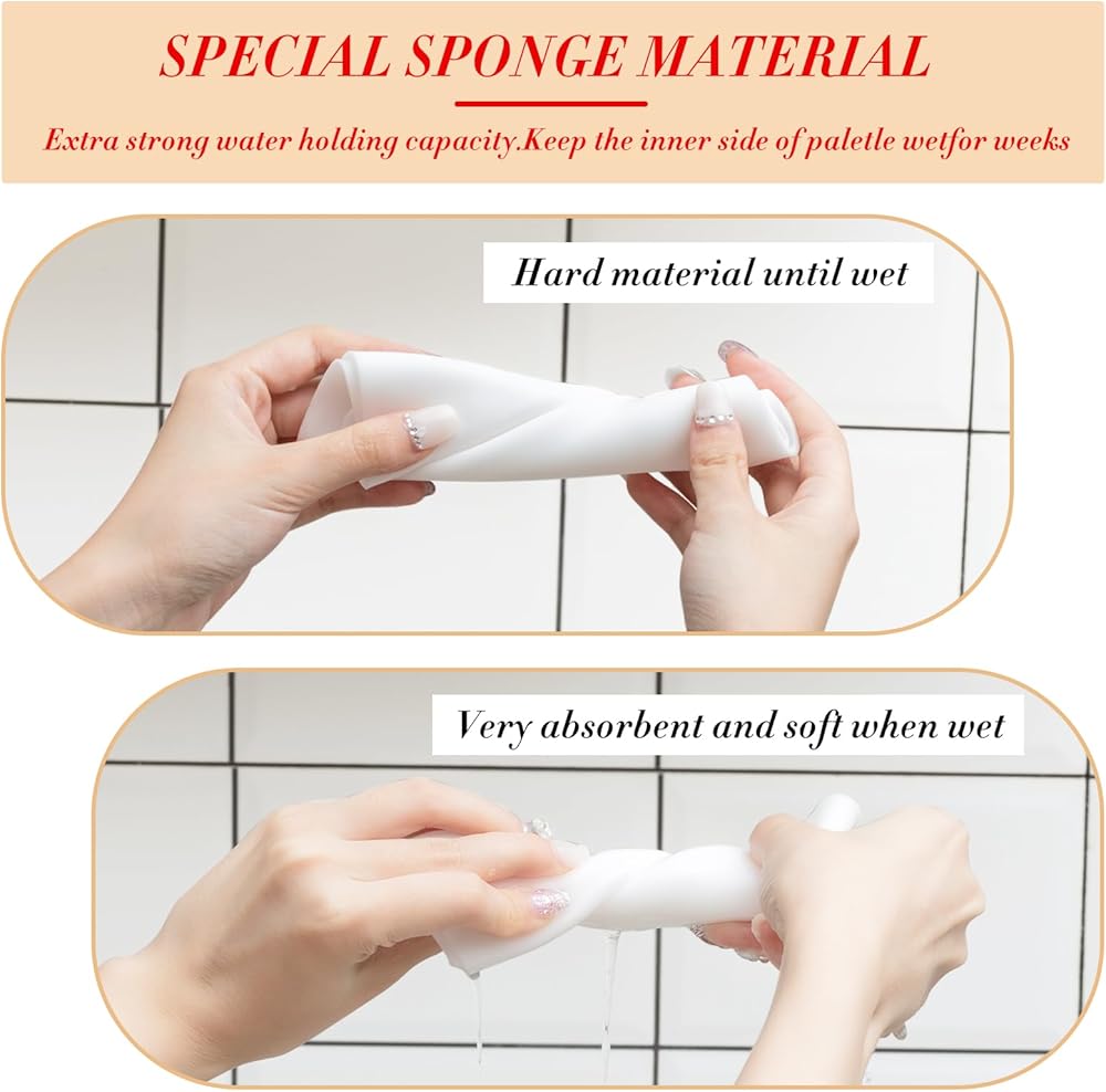 • مريحة في الاستخدام: إسفنجات الباليت المبللة تحتفظ بالماء، ويمكن غسلها يدويًا وموثوق بها، والتي يمكن أن تتجنب الفوضى والإزعاج للوحات الألوان العادية، كما أنها محمولة وسهلة الحمل