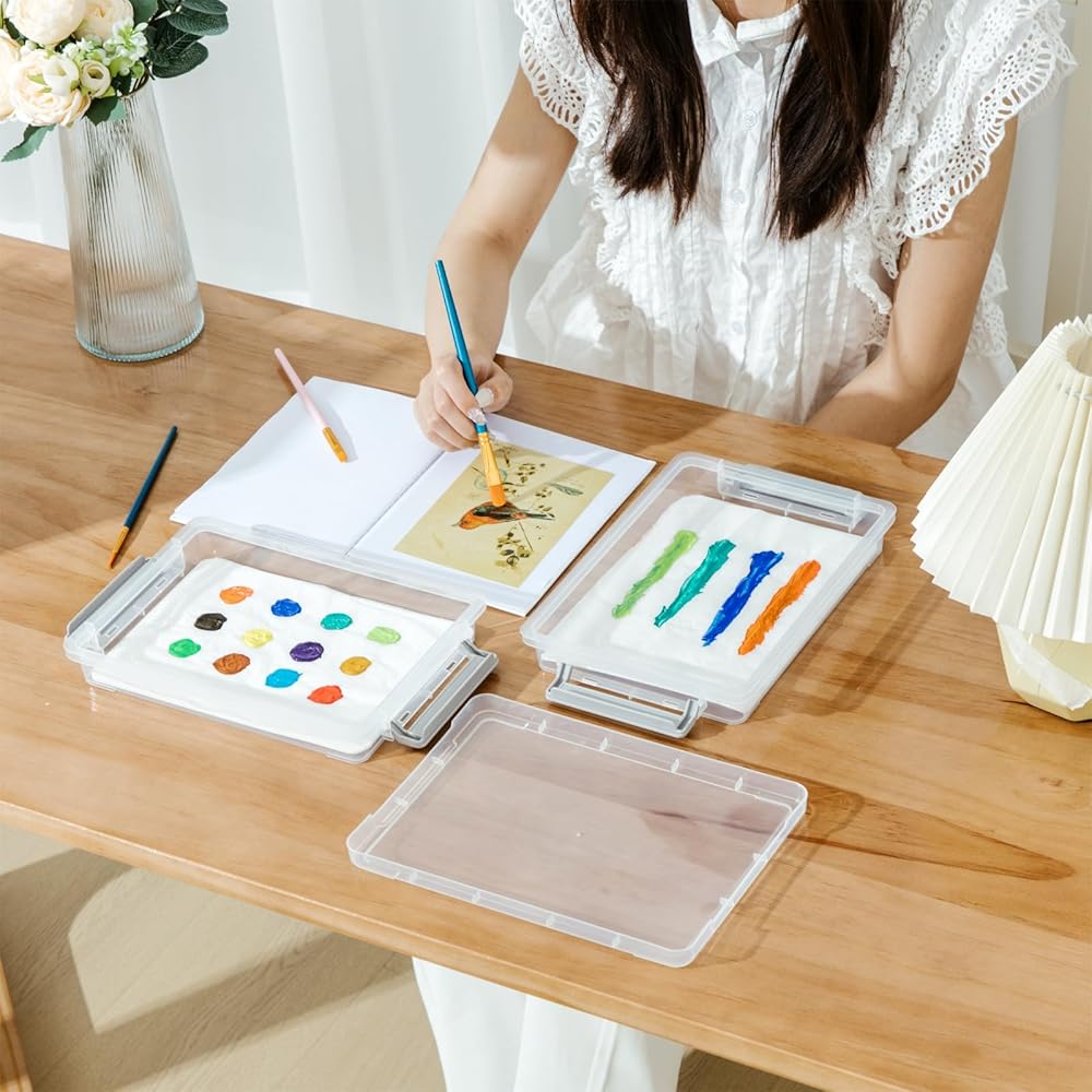 جيتيك باليت مبللة للمصغرات مع ورق باليت واسفنجات مبللة مكونة من طبقتين مع غطاء تبقى رطبة للطلاء، تحافظ على الدهانات رطبة ومنعشة، 107 قطعة