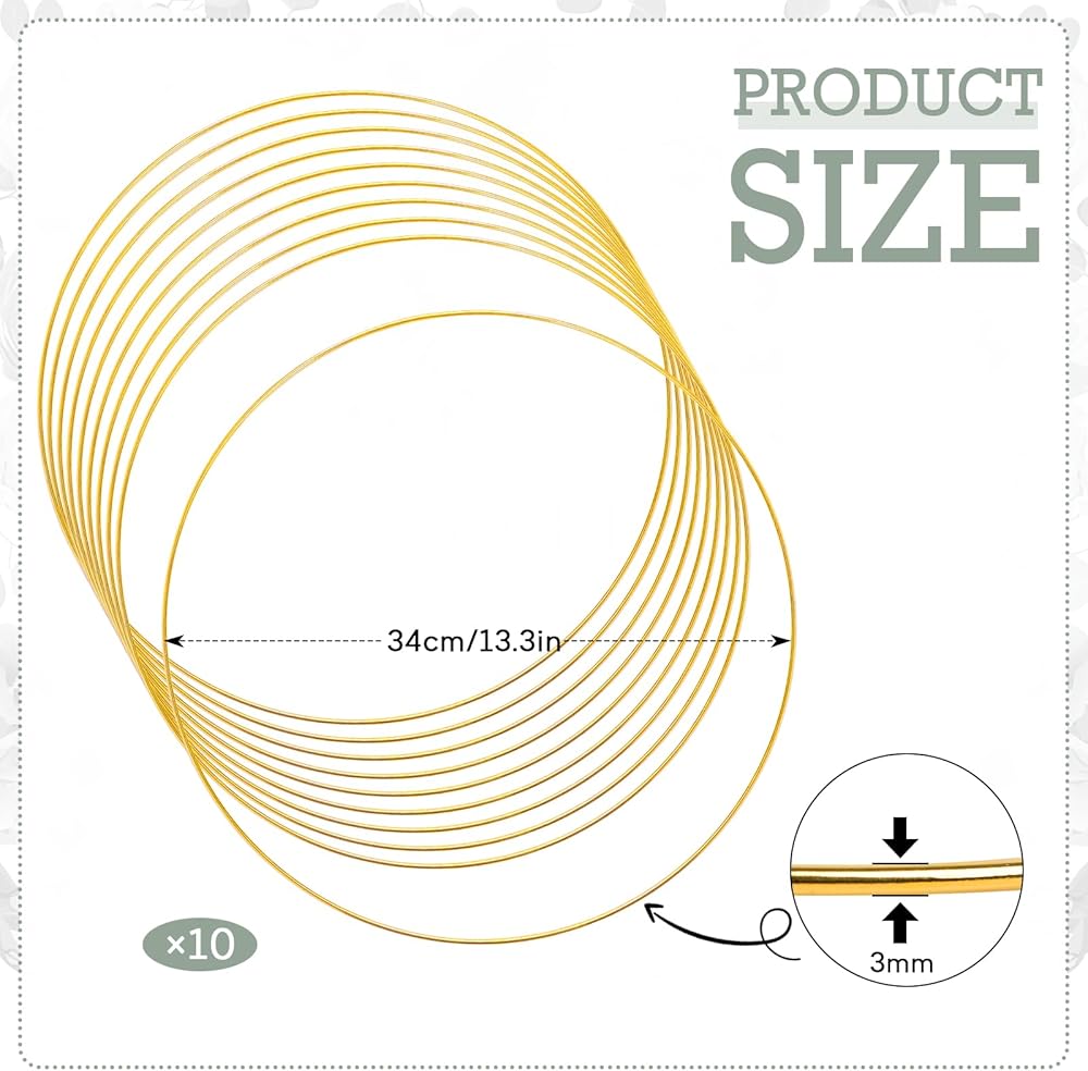 【معلومات العبوة】سوف تحصل على 10 خواتم معدنية ذهبية. القطر الخارجي 35 سم، القطر الداخلي 34 سم، والسمك 3 ملم، الكمية كافية لتلبية ديكور منزلك الجميل وخلق جو رومانسي.