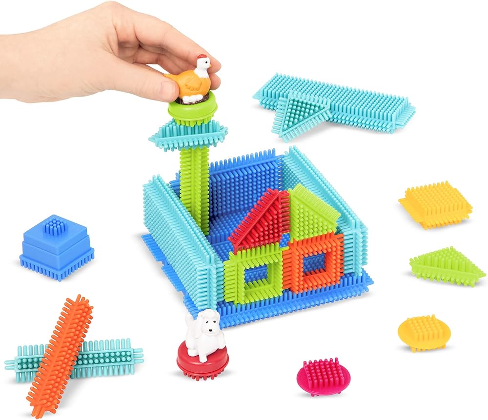تشتمل "حقيبة البناء الفاخرة" من Bristle Block على تسعة تماثيل (أشخاص وحيوانات مختلفة) للحصول على مجموعات ممتعة.