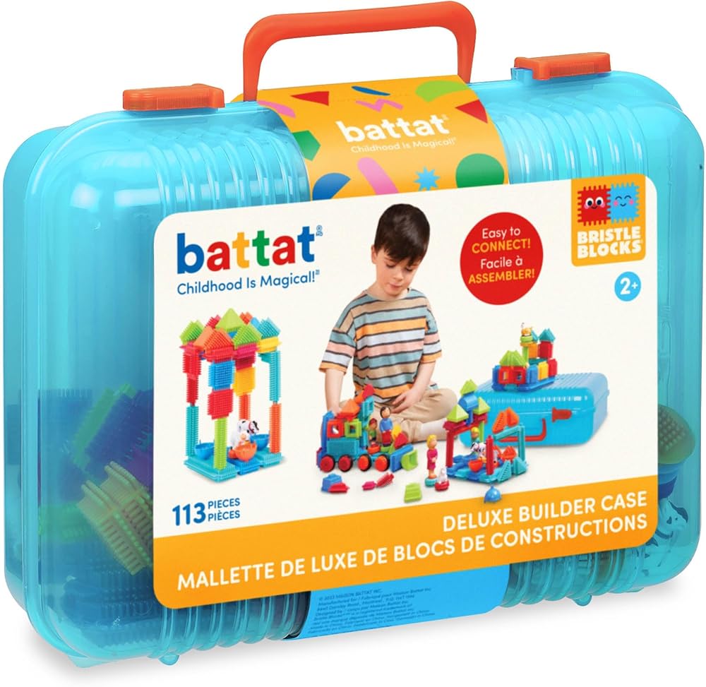 تعتبر مجموعة البناء الأساسية المكونة من 113 قطعة من Battat Bristle Blocks مثالية لبناء التنسيق بين اليد والعين وتحفيز العقول الشابة والفضولية. تتميز الكتل ذات الشعيرات بشعيرات ناعمة ومتشابكة تلتصق ببعضها البعض في أي زاوية من أجل بناء خالٍ من الإحباط. تتضمن مجموعة البناء الأساسية هذه 113 قطعة بأحجام متنوعة وألوان نابضة بالحياة لساعات من اللعب الخيالي. توفر عائلة مكونة من أربعة (4) تماثيل وخمسة (5) تماثيل حيوانات خيارات إضافية للعب. تتوافق المكعبات الموجودة في هذه المجموعة مع مجموعات المكعبات ذات الشعيرات Battat Spinaroo وStackadoo. يوصى بها للأعمار من سنتين فما فوق.