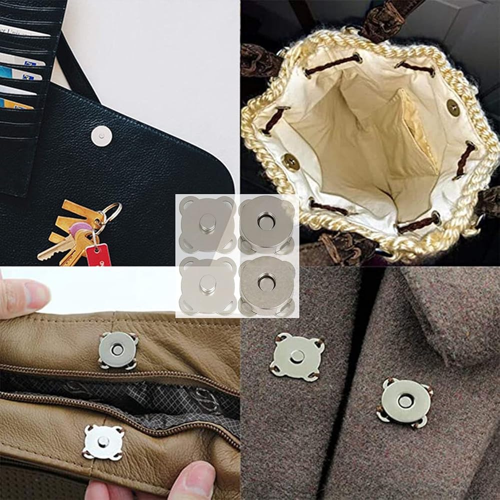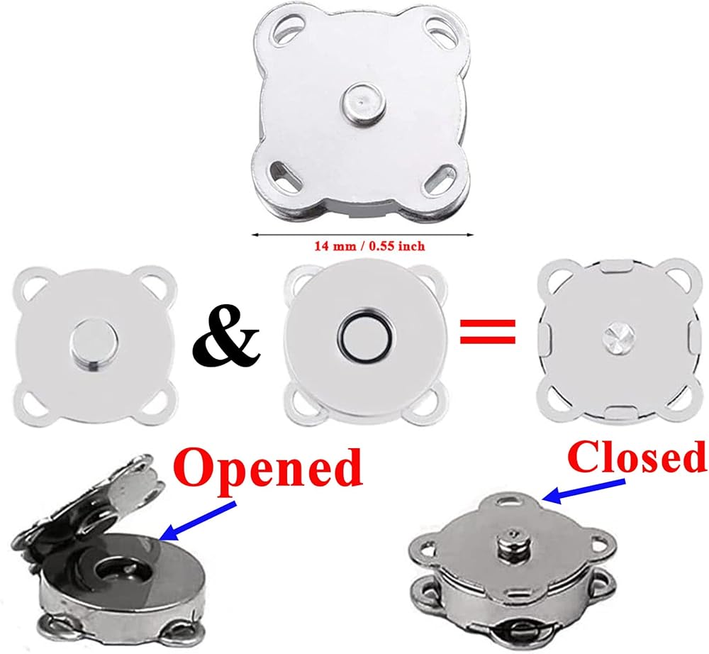 【سهلة الخياطة وسهلة الاستخدام】 تتكون الأزرار المغناطيسية من جزأين. بمجرد وضع المشبكين في مكانهما، يتم تثبيتهما معًا عندما يقتربان من بعضهما البعض. سهلة الخياطة ومريحة في الاستخدام. وأثناء استخدام الأزرار المغناطيسية، لن تلحق الضرر بالملابس والأقمشة. بعد الخياطة، يكون الإبزيم متينًا وليس من السهل أن يسقط.