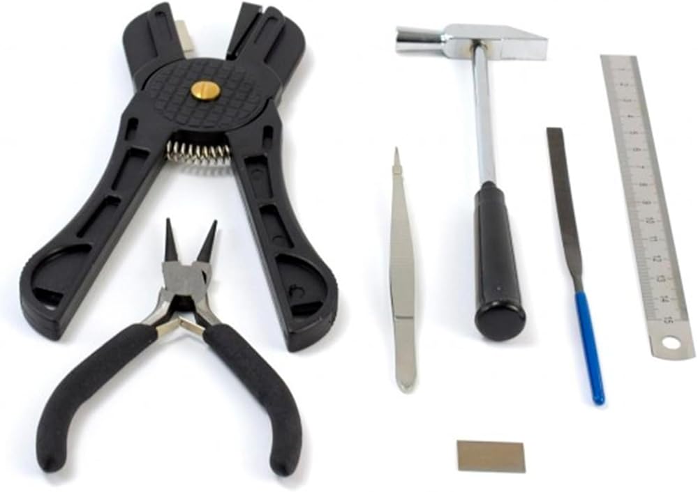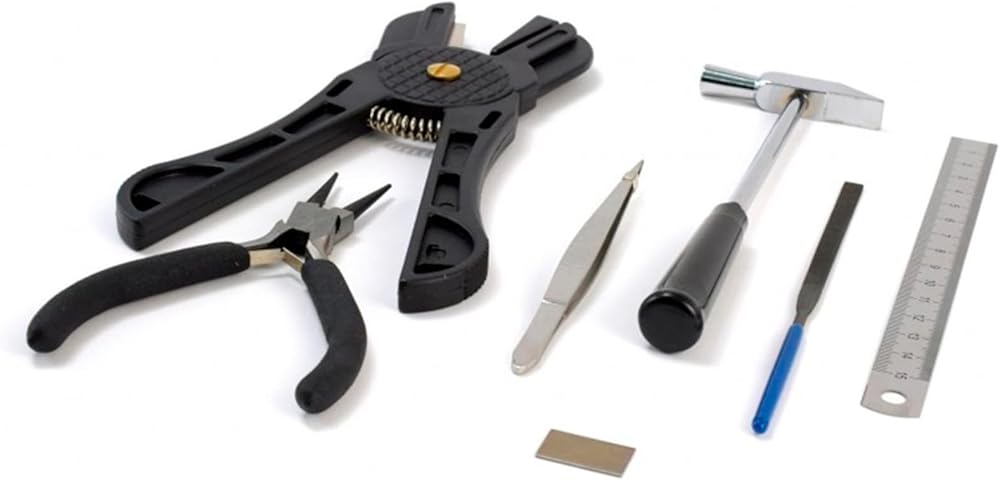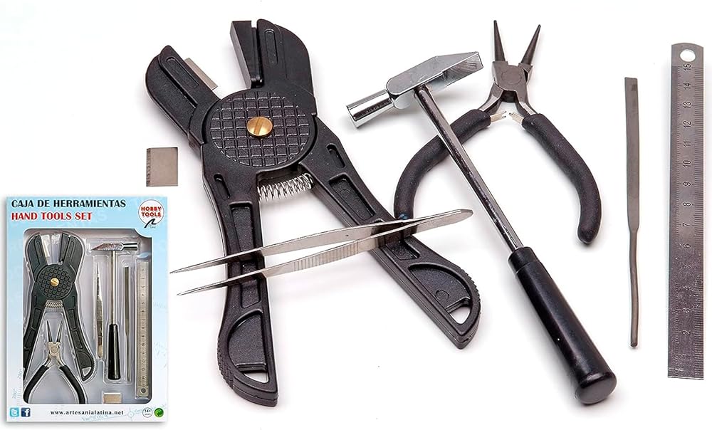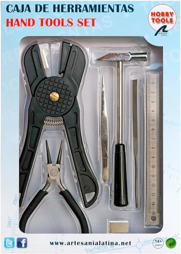 مجموعة أدوات النمذجة. توفر مجموعة أدوات التشكيل الاحترافية 1 أدوات لبناء نماذج السفن والطائرات والقطارات بسهولة: فهي تتضمن أداة ثني الألواح الخشبية التي تسهل ثني الخشب بشفرة احتياطية وملاقط ومطرقة برأس معدني ومسمار مسطح ومسطرة وكماشة أنف دائرية. هدية مثالية لمصممي الأزياء المتقدمين. ما يتضمن: أداة ثني الألواح الخشبية: تتضمن شفرة احتياطية. كماشة لثني الشرائح الخشبية عن طريق عمل شقوق داخل المنحنى الذي تريد تحقيقه. مصنوعة من بلاستيك ايه بي اس. الملاقط: مثالية للعمل والتعامل مع القطع الصغيرة. مطرقة برأس معدني: أداة أساسية متعددة الاستخدامات. مطرقة نموذج مصنوعة من الستيل المطلي بالكروم. برغي مسطح: للأسطح الخشنة والتسوية مسطرة: مسطرة معدنية 150 ملم. لأخذ القياسات، استخدمه كدليل... كماشة دائرية الأنف: تسمح بالعمل وتعطي الشكل للقطع المعدنية والأسلاك وما إلى ذلك.