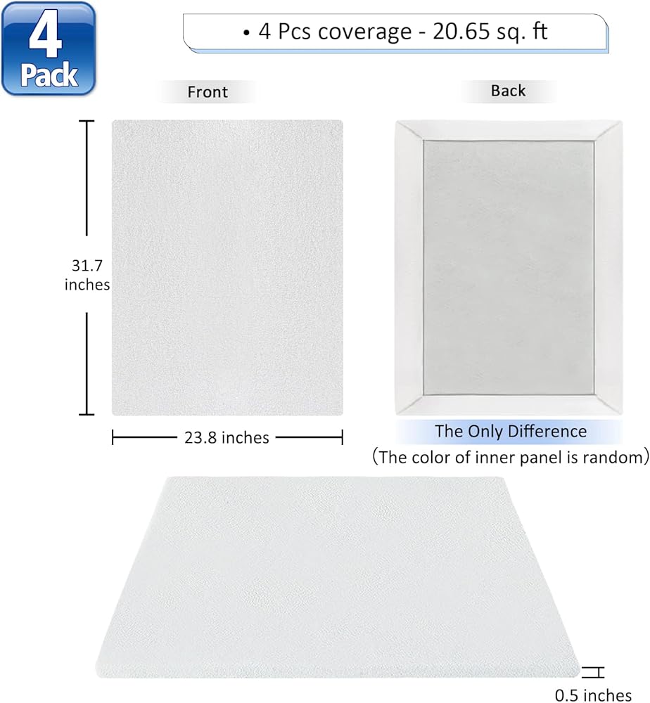 【المواصفات】: الحجم - 31.5 × 23.6 × 0.6 بوصة لكل لوح، عبوة من 4 قطع، تغطي 20.65 قدم مربع معًا؛ وزن خفيف - 1.9 رطل لكل لوحة؛ المادة - لوح اللباد والفانيلا عالي الجودة (لون اللوحة الداخلية عشوائي)