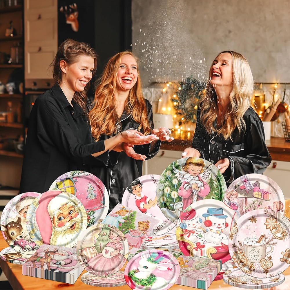 dydamud الوردي زينة عيد الميلاد، الرجعية الملاك الأخوات أدوات المائدة مجموعات خمر لوحات حزب سانتا والمناديل شجرة متمنيا لفصل الشتاء عيد الميلاد عطلة حزب تفضل