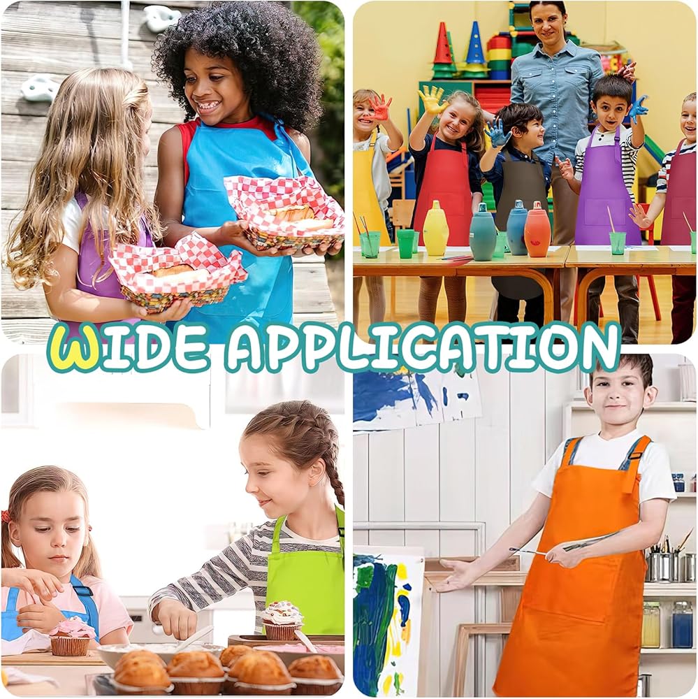 تحتوي العبوة على 24 قطعة من مآزر الأطفال، يمكن أن تلبي احتياجات طفلك من الكمية، مناسبة للطفل الذي تريد مساعدتك على الطهي في المطبخ أو الرسم بنفسك