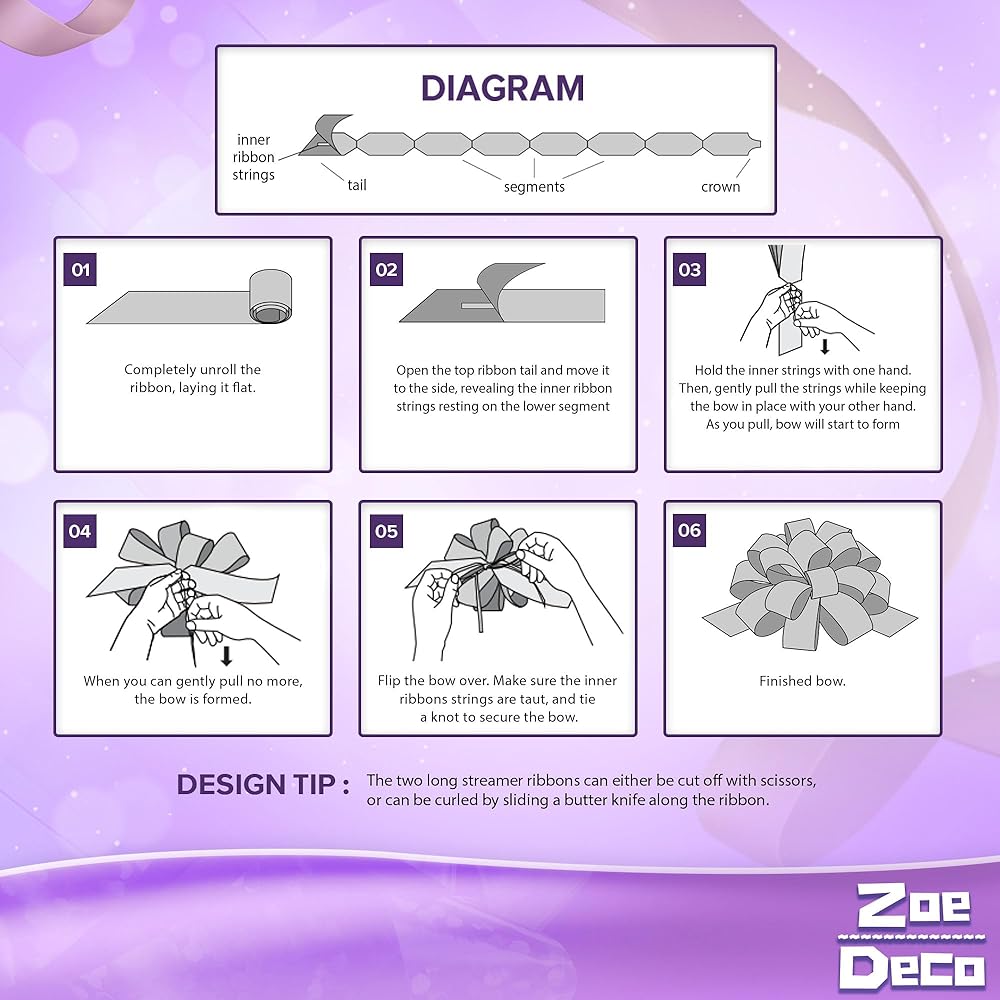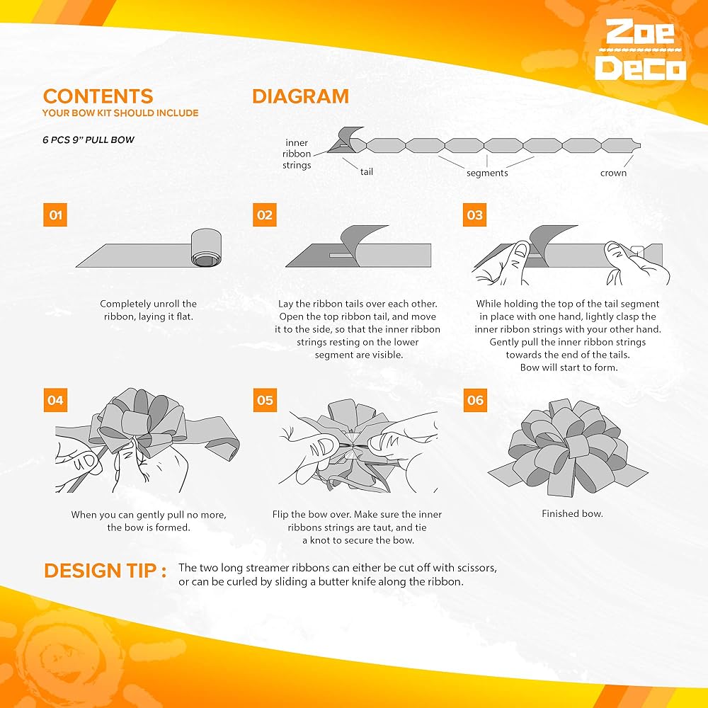 تتضمن العبوة - 5 أقواس هدايا من الساتان في مجموعة متنوعة؛ يبلغ مقاس كل منها 9 بوصات مع 24 حلقة مذهلة