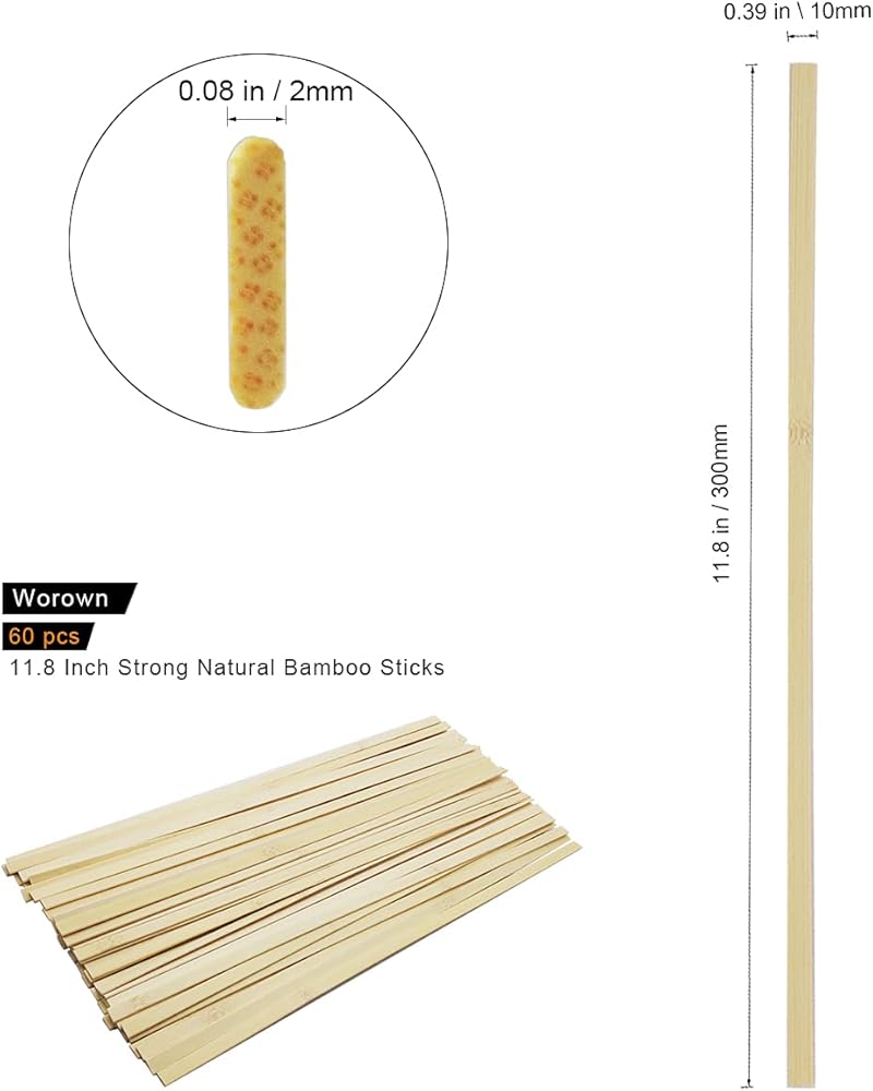 60 قطعة من أعواد الخيزران الطبيعية القوية مقاس 11.8 بوصة، أعواد حرفية خشبية، أعواد طويلة للغاية، شرائط خشبية للمشروعات اليدوية، عرض 3/8 بوصة