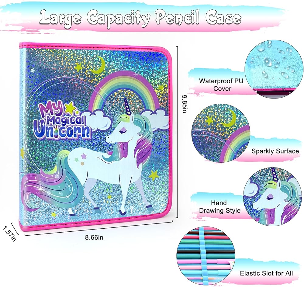 ✨ Unicorn Pencil Case for Girls --- Waterproof PU cover, cute pattern and sparkly pencil case, it will be a huge surprise for her. Large capacity, slots to placed every parts, keep this set and room tidy and neat. Portable to carry it anywhere, it's perfect for kids to carry out their creation at home, class, or on travel. It helps eliminating fatigue and boredom and concentrate on her creativity.