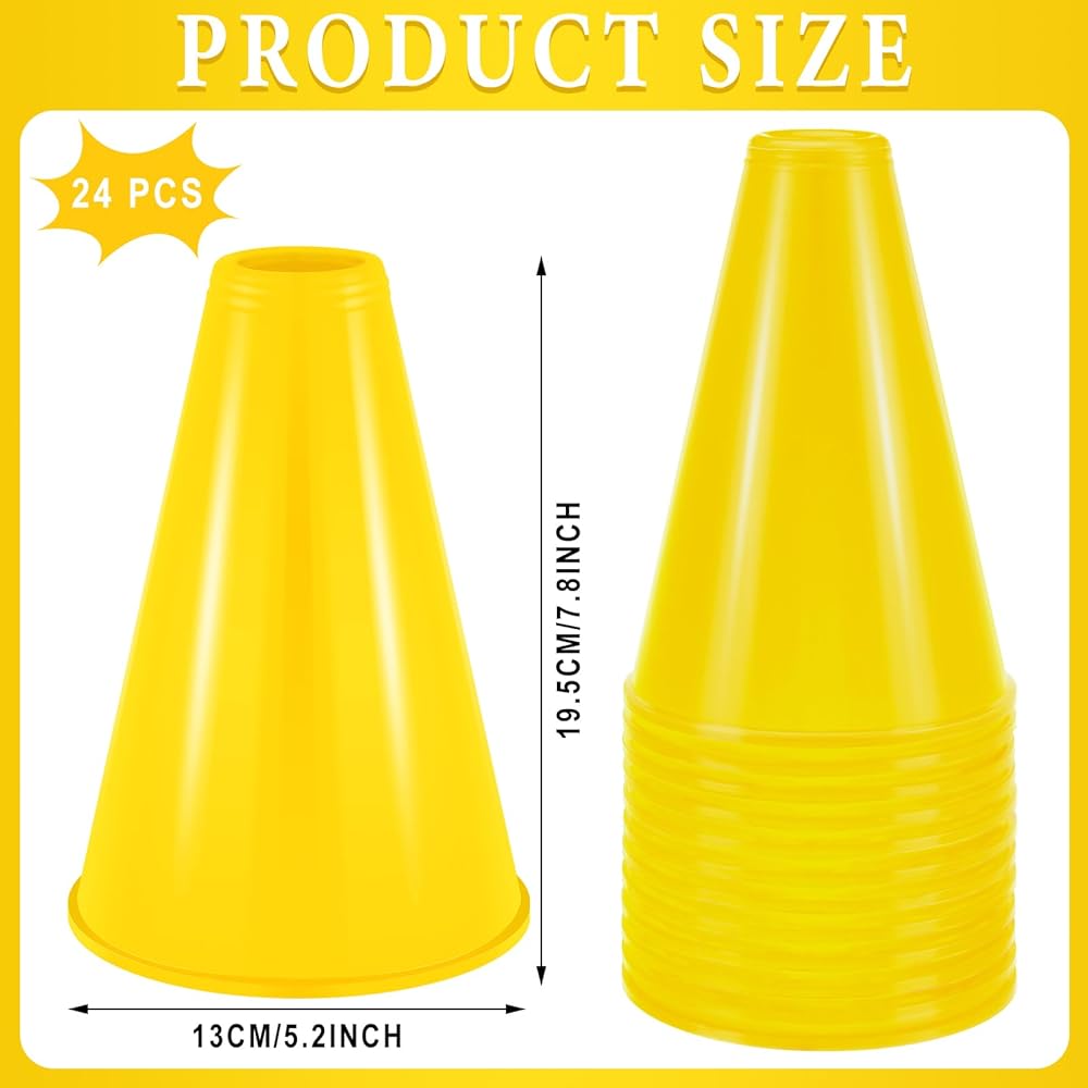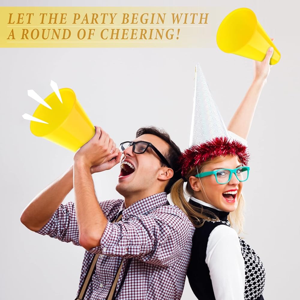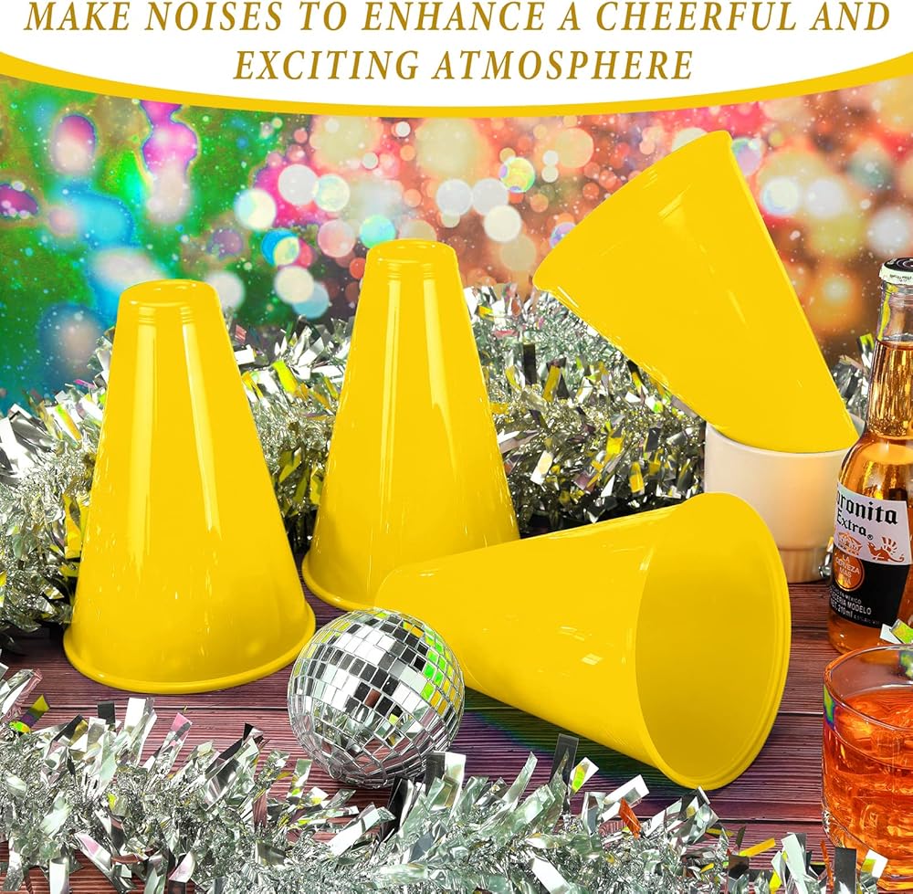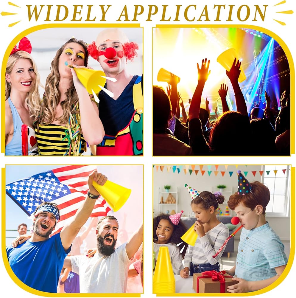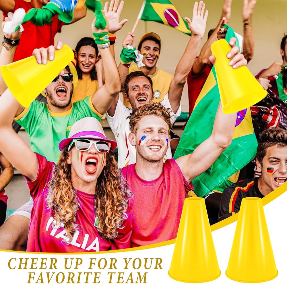 Abundant in Quantity: this package contains an abundance of 24 pieces of cheer megaphones in yellow, providing plenty enough for events; This quantity allows for broad use at gatherings, including sporting events, pep rallies, parties and more