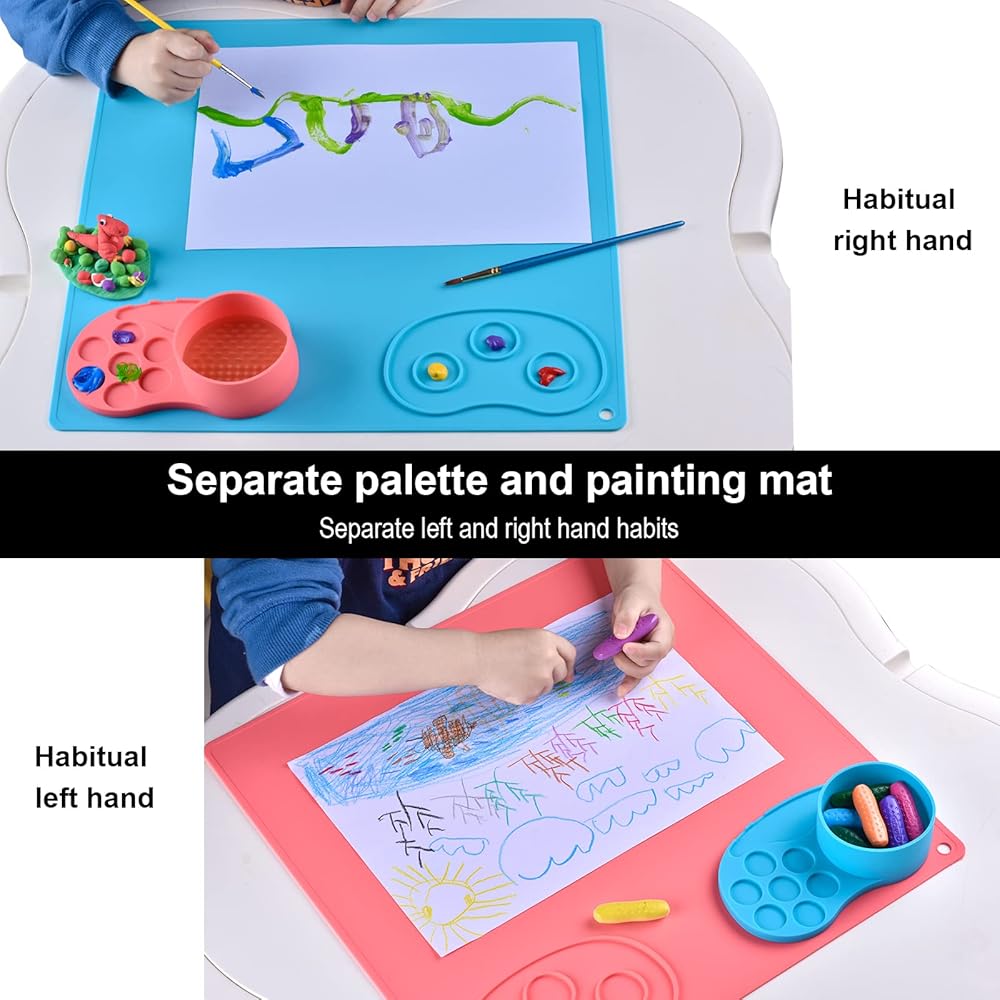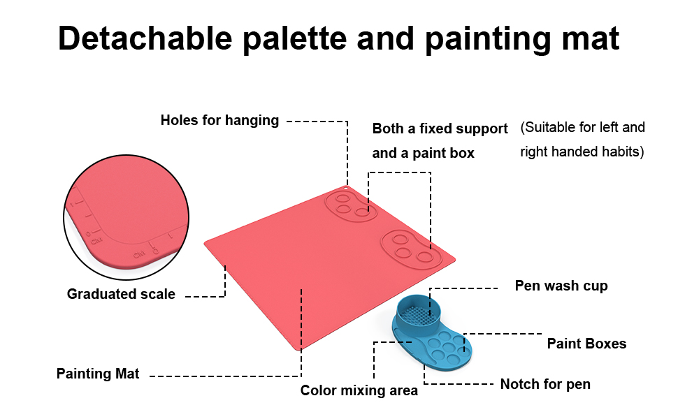 【تصميم فريد】يمكن فصل لوحة الألوان وحصيرة الرسم ودمجها، مما يزيد من مرونة الرسم. ليس عليك تثبيته على الطاولة للرسم، يمكنك التقاط صينية الطلاء وإنشاء حامل الزهور.