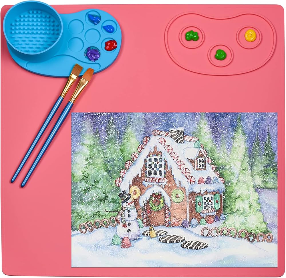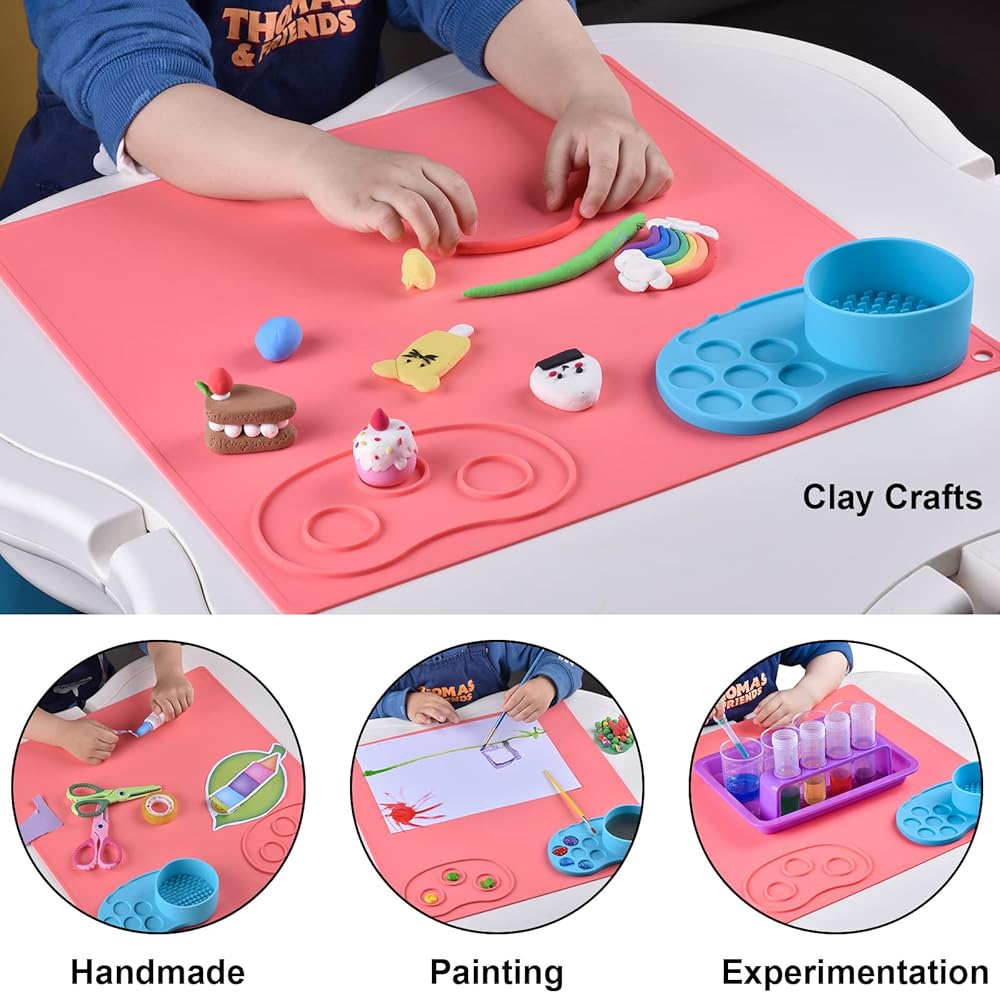 حصيرة طلاء سميكة من السيليكون مع لوحة قابلة للفصل. مناسب للاستخدام باليد اليسرى واليمنى للطلاء وصناعة الراتنج والطين وعجين اللعب والخرز وغيرها من المشروعات التي تصنعها بنفسك. (لون القرنفل)